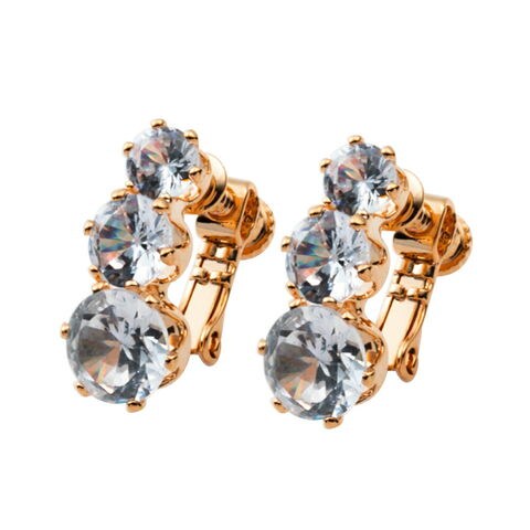 大小異なるビジューを3粒並べたラインピアス/イヤリング。無駄のないシンプルなデザインと耳に沿うフォルムが品の良い可愛いさを演出します。シーンを選ばず着けられるオススメのひと品です。
