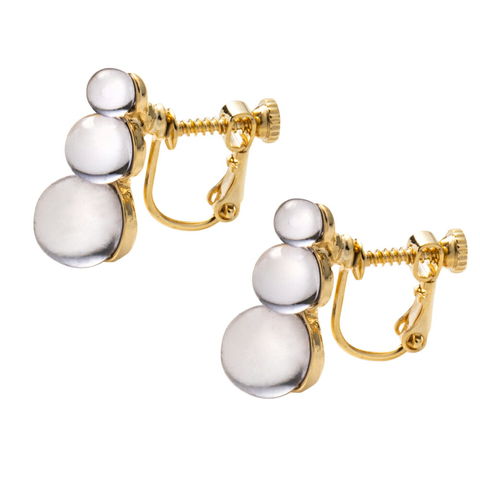 大きさの異なるクリアボールを3つ並べたピアス/イヤリング。雪だるまのような可愛らしいフォルムがありそうでないデザイン◎ゴールドの台座がより一層輝きを高めてくれます。コーデのアクセントにオススメです。