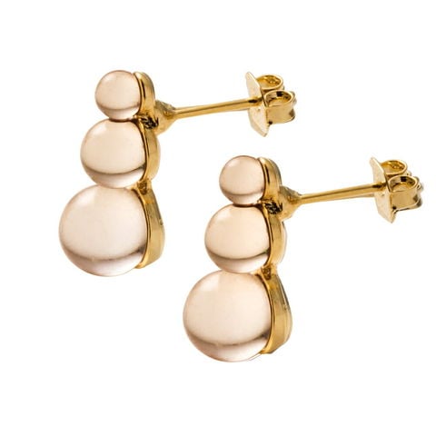 大きさの異なるクリアボールを3つ並べたピアス/イヤリング。雪だるまのような可愛らしいフォルムがありそうでないデザイン◎ゴールドの台座がより一層輝きを高めてくれます。コーデのアクセントにオススメです。