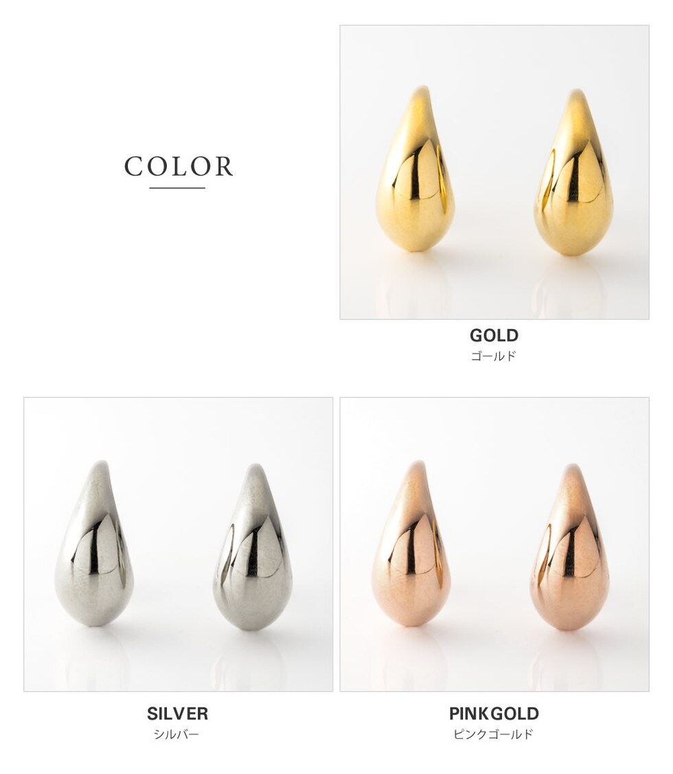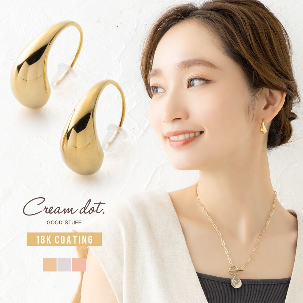 ピアス 金属アレルギー ニッケルフリー レディース フック ドロップメタル 雫 カーブ フープ ぷっくり 大きめ cream dot ゆうパケット [ピンクゴールド_ピアス]