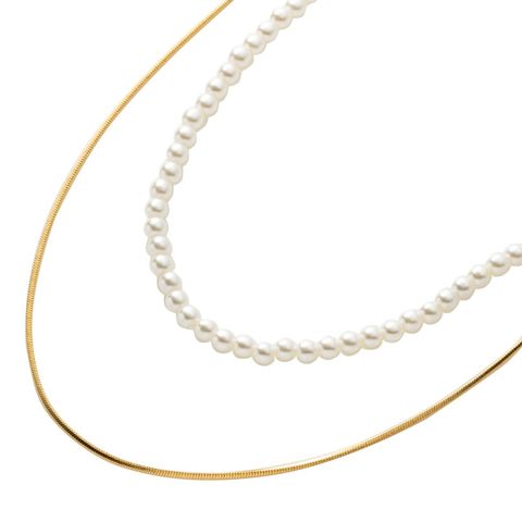 小粒パールとスネークチェーンの2点セットネックレス。辛めチェーンと甘めパールの組み合わせが今っぽいデザイン◎重ねての着用はもちろん、それぞれ単品でもお使い頂け、コーデに合わせてアレンジの効くアイテムです。