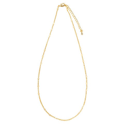 小さなプレートが等間隔に連なるペタルチェーンのチョーカーネックレス。華奢なチェーンが繊細に煌めき女性らしく華やかな印象に仕上げてくれます。胸元にさりげないアクセントを添えてくれます。