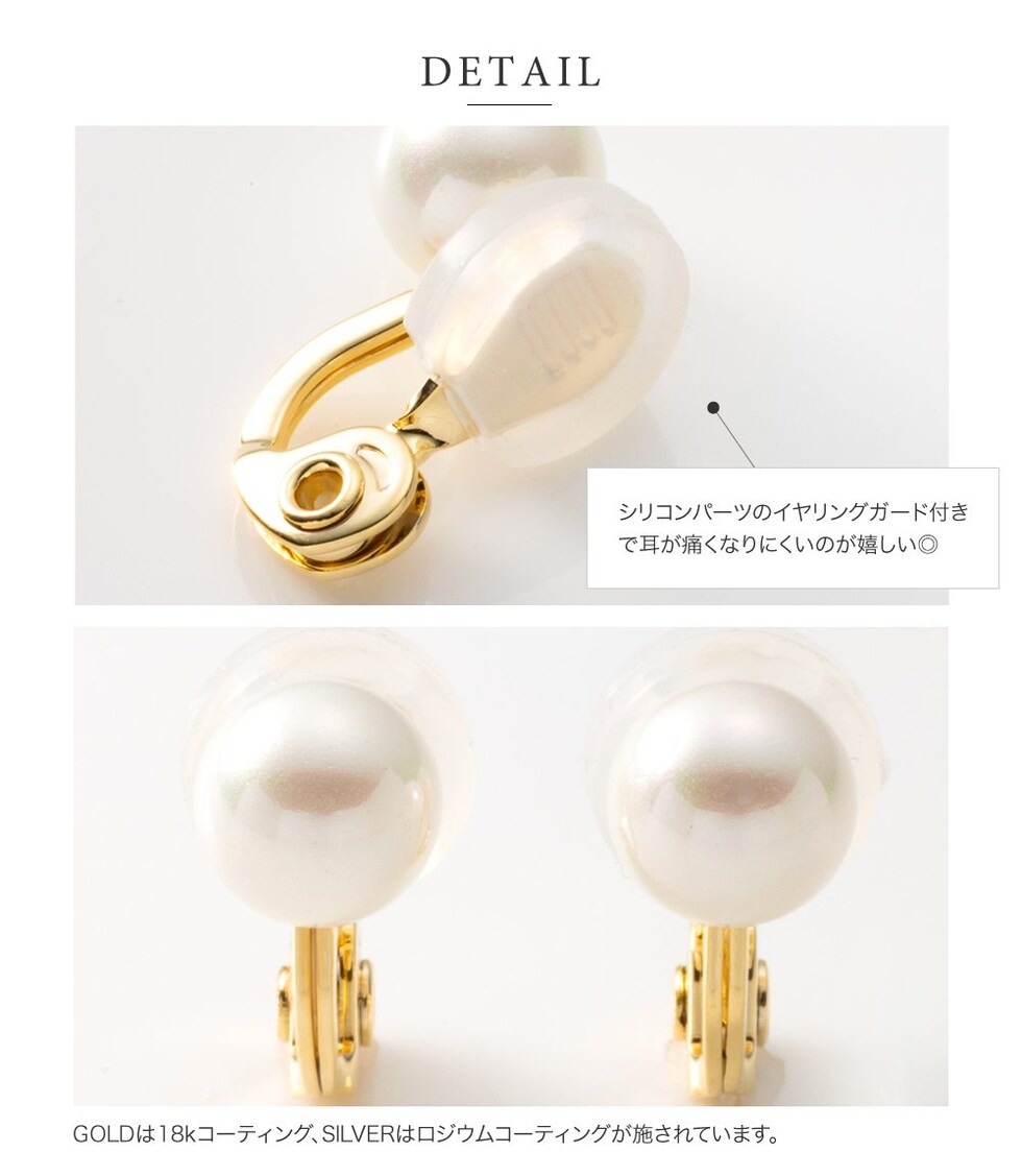 イヤリング 金属アレルギー ニッケルフリー レディース シリコンカバー クリップ式 一粒パール cream dot ゆうパケット [ゴールド_イヤリング]