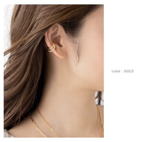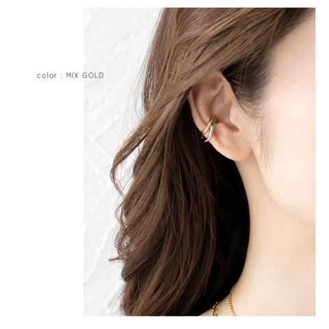 耳に沿うように計算された滑らかなクロスラインが美しい、ミディアムメタルの片耳用イヤーカフ。悪目立ちしない絶妙な大きさが◎トレンドのコンビカラーデザインが程良い個性と大人っぽい品格を演出してくれるアイテムです。