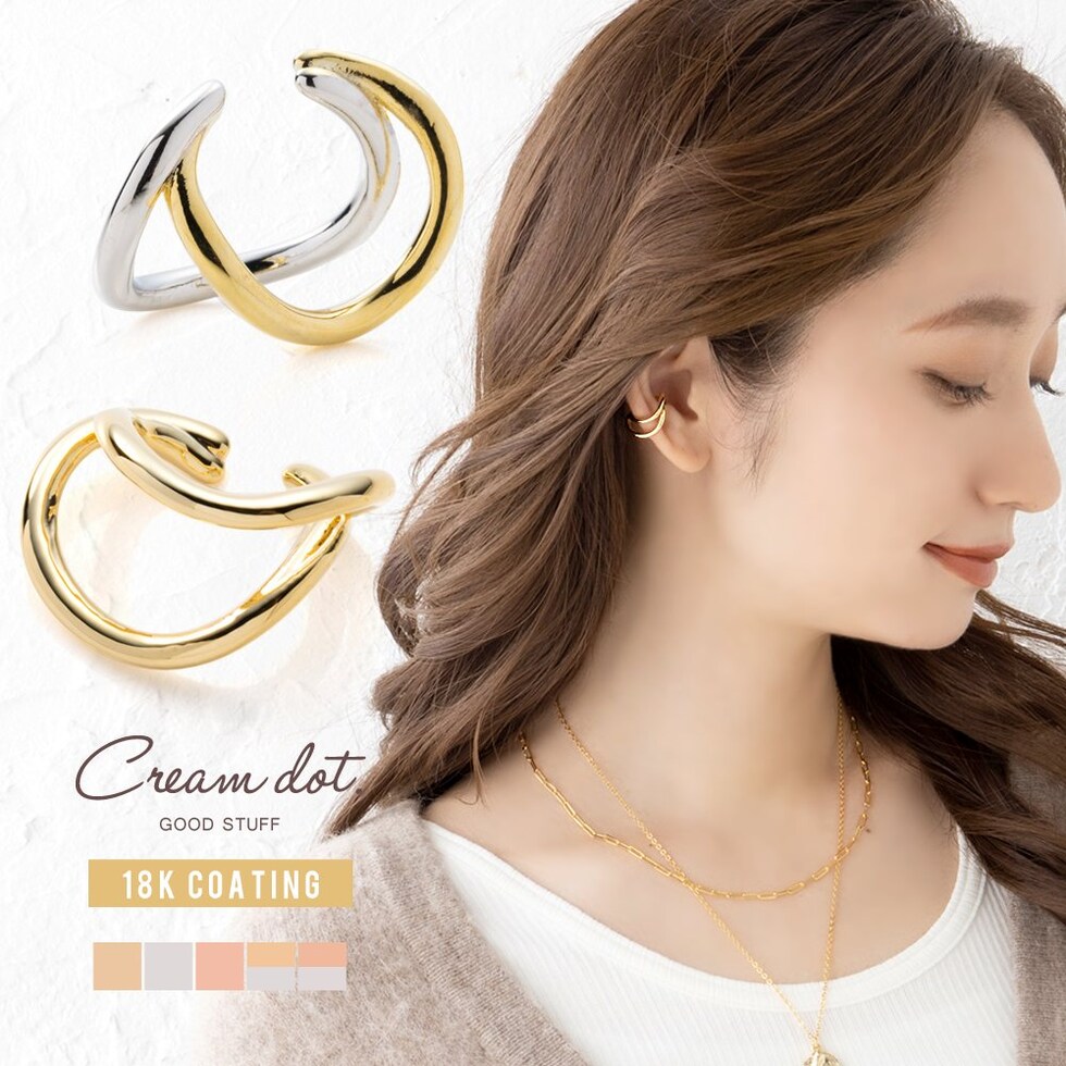 イヤーカフ 金属アレルギー ニッケルフリー レディース イヤーカフ イヤカフ 片耳用 メタル 変形 クロス コンビカラー バイカラー cream dot ゆうパケット [ミックスゴールド_ワンサイズ]