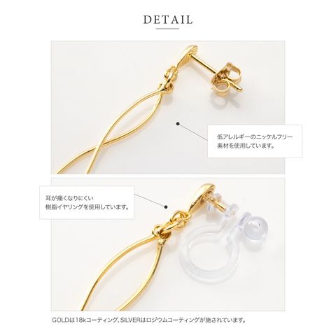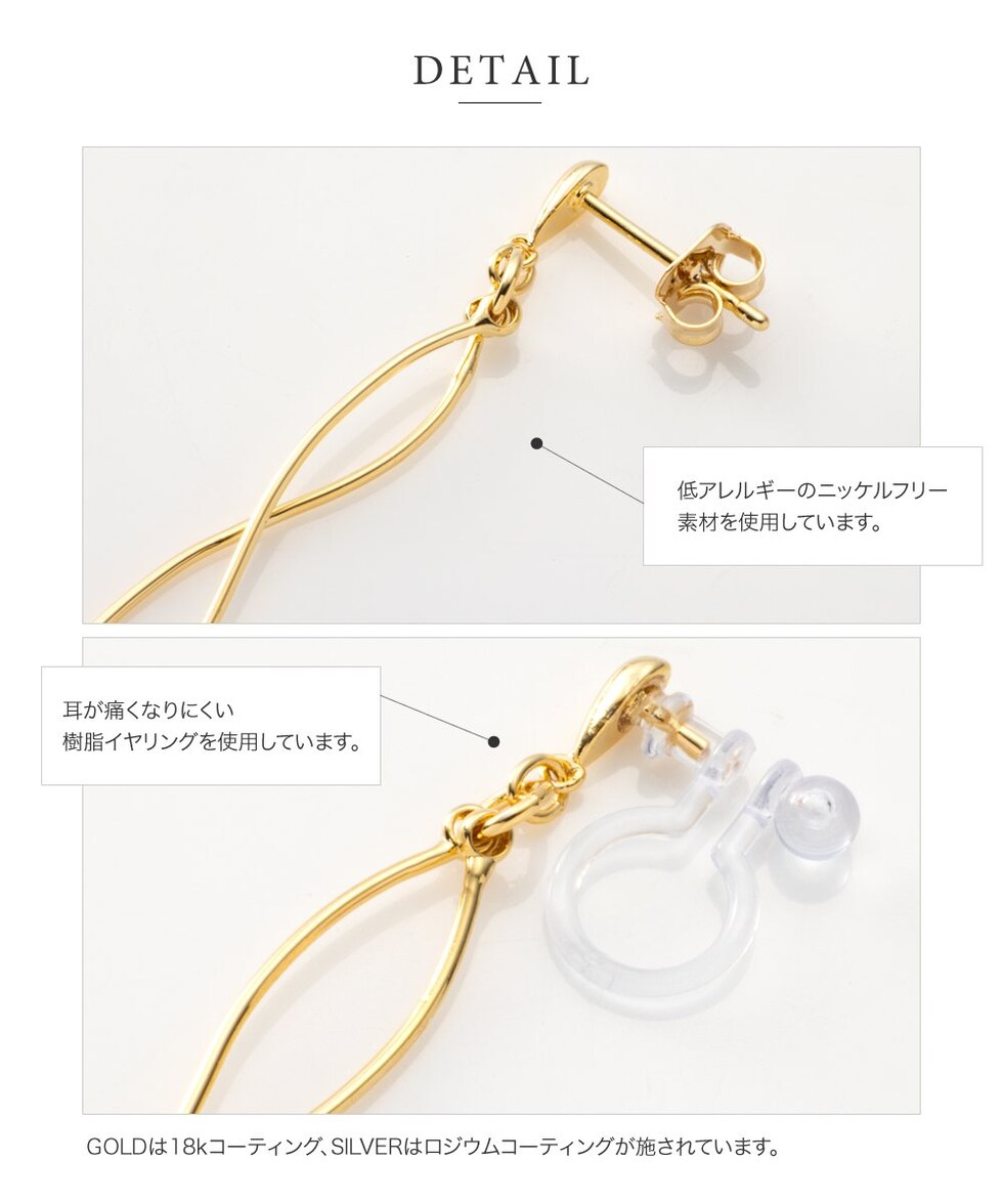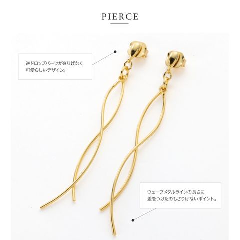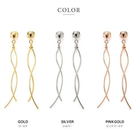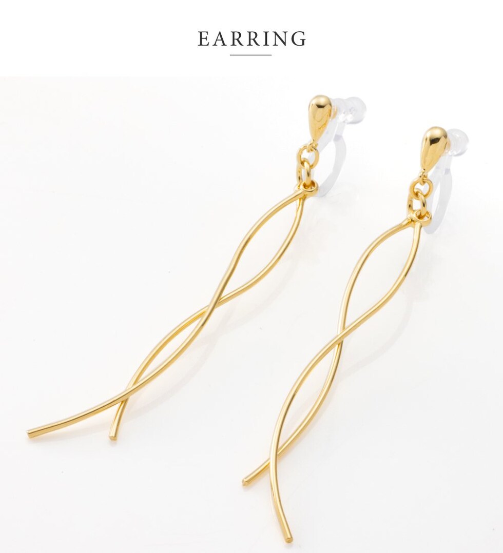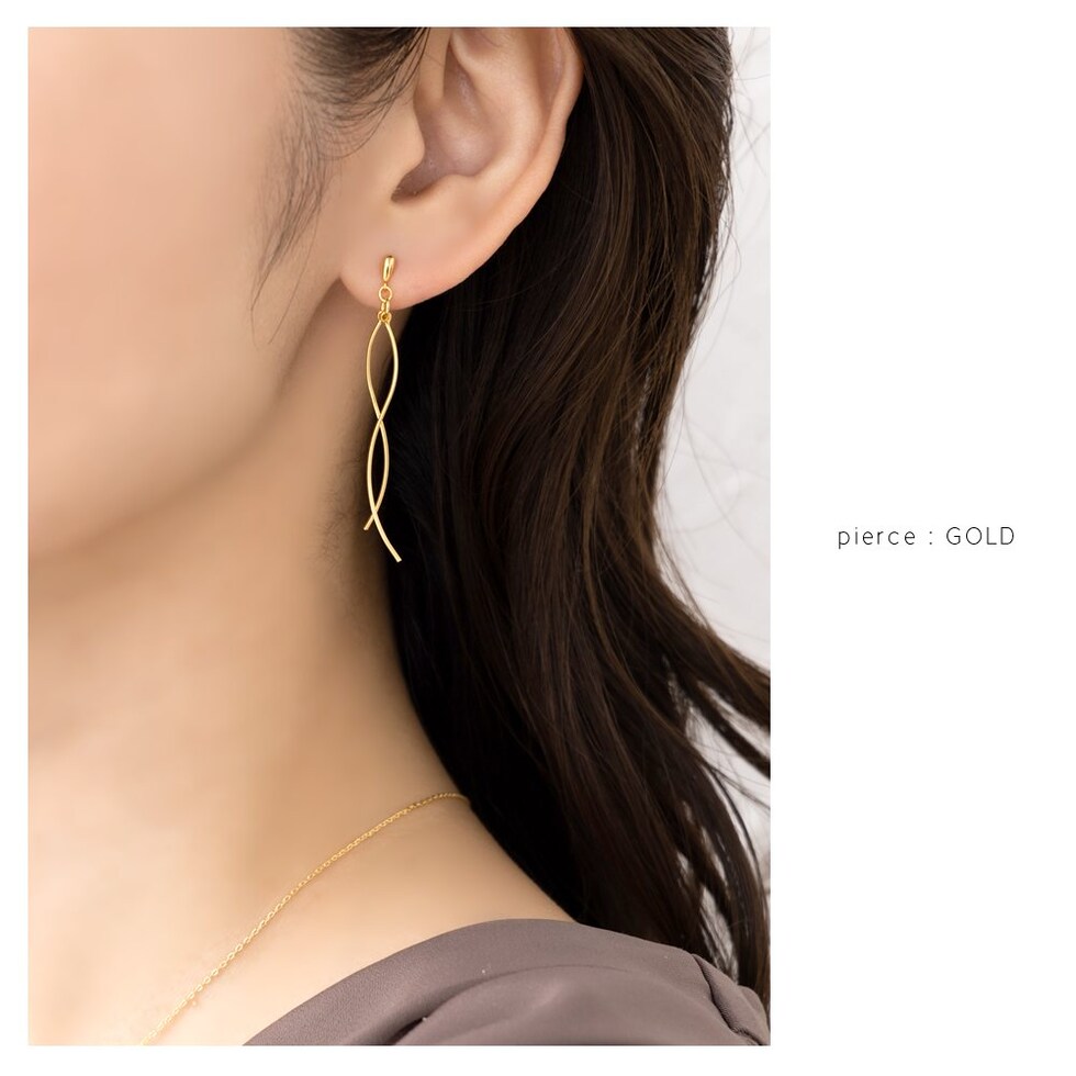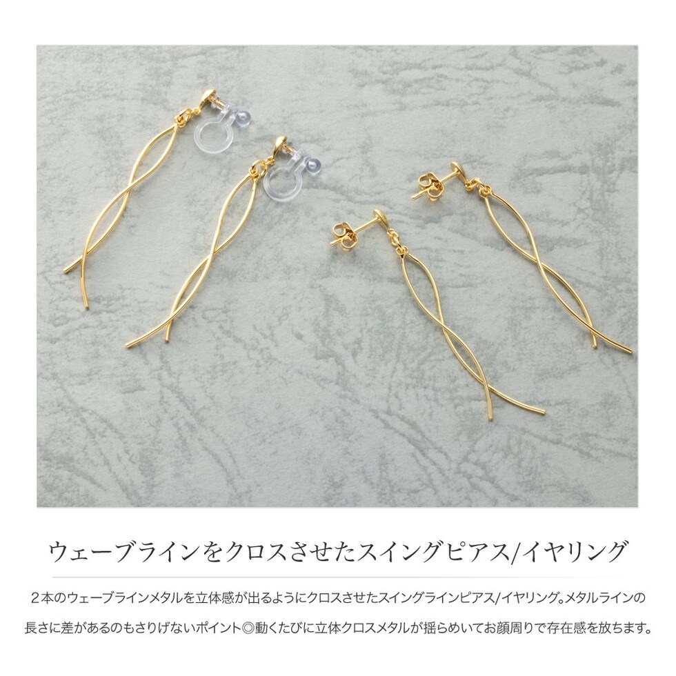 2本のウェーブラインメタルを立体感が出るようにクロスさせたスイングラインピアス/イヤリング。メタルラインの長さに差があるのもさりげないポイント◎動くたびに立体クロスメタルが揺らめいてお顔周りで存在感を放ちます。