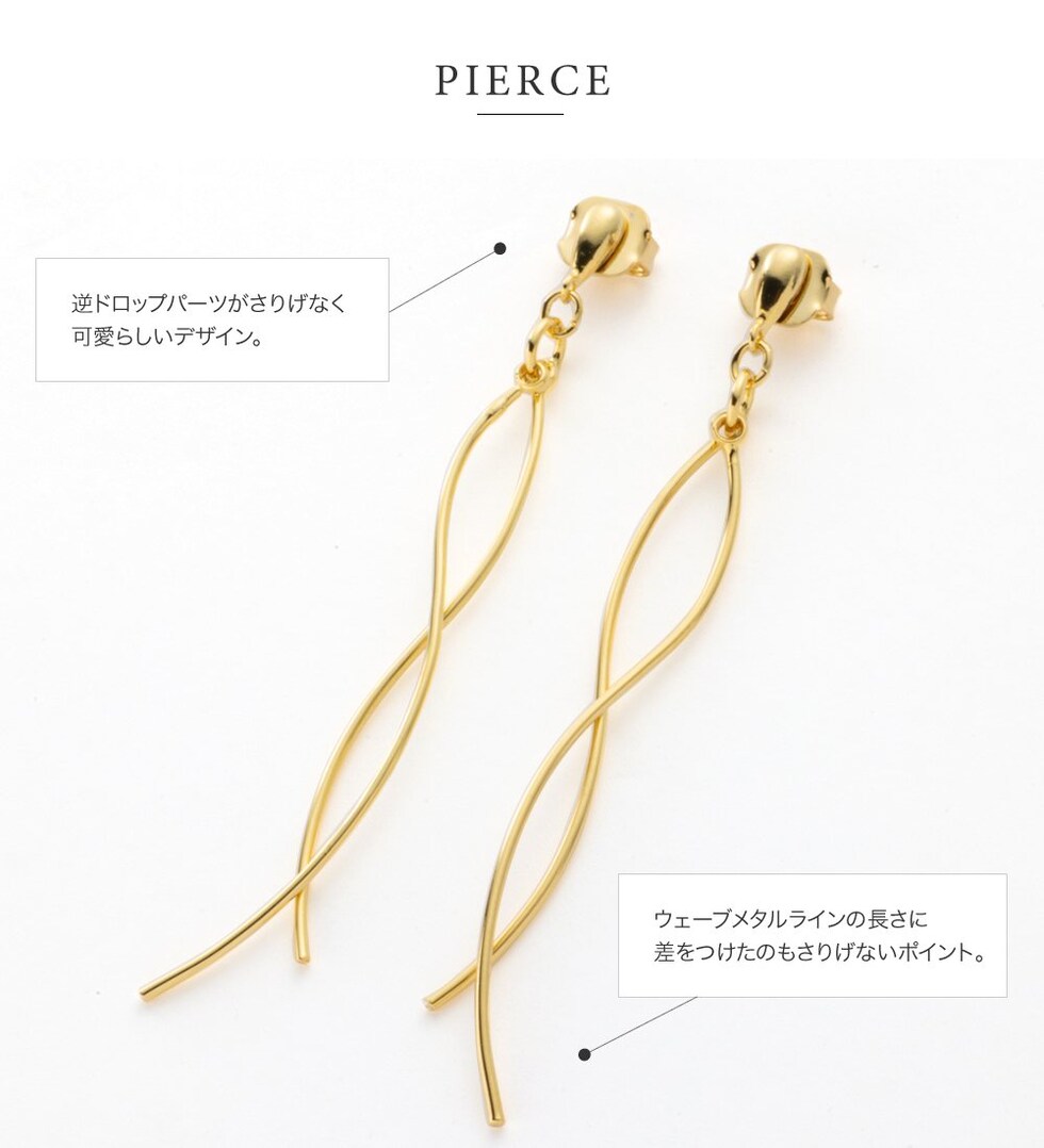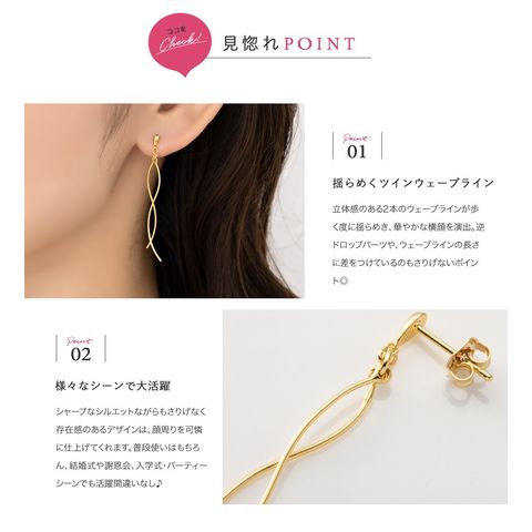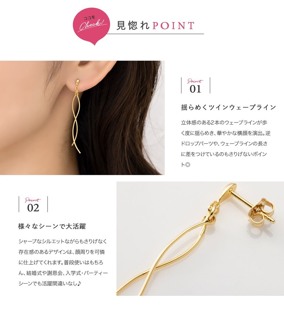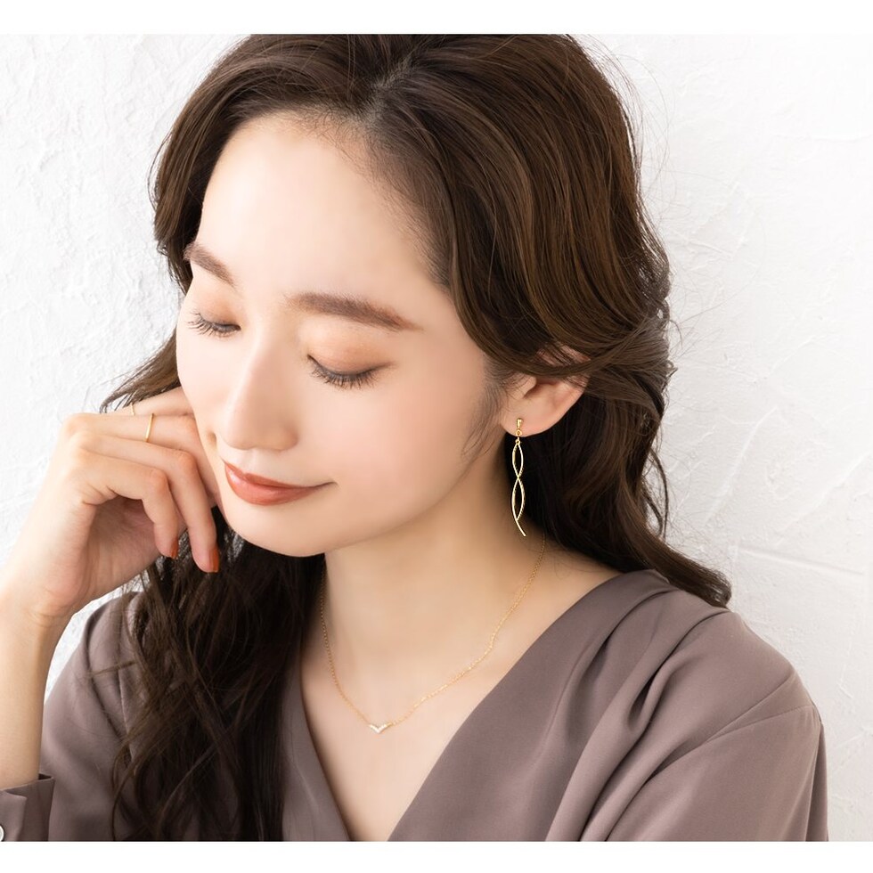 立体感のある2本のウェーブラインが歩く度に揺らめき、華やかな横顔を演出。逆ドロップパーツや、ウェーブラインの長さに差をつけているのもさりげないポイント◎