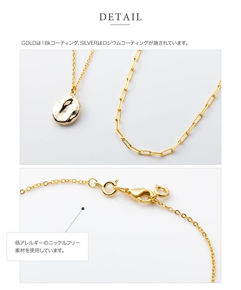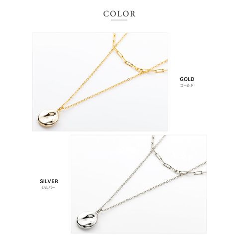 ネックレス 金属アレルギー ニッケルフリー レディース 2点セット ショート オーバルチェーン レオンチェーン コイン アジャスター 二連 重ねづけ 4way 取り外し cream dot ゆうパケット [ゴールド_ワンサイズ]