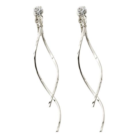ピアス イヤリング 金属アレルギー ニッケルフリー レディース 揺れる ネジ式 キュービックジルコニア ビジュー ウェーブ ひねり cream dot ゆうパケット [シルバー_イヤリング]