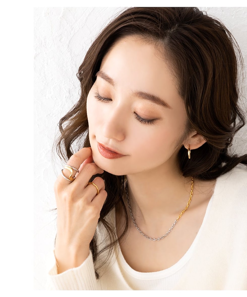 艶感のある変形メタルが大人の品格漂うアーバンな印象に。大きすぎない絶妙なサイズ感がさりげない存在感とこなれ感を与え、デイリーユースにも最適なITEMです◎