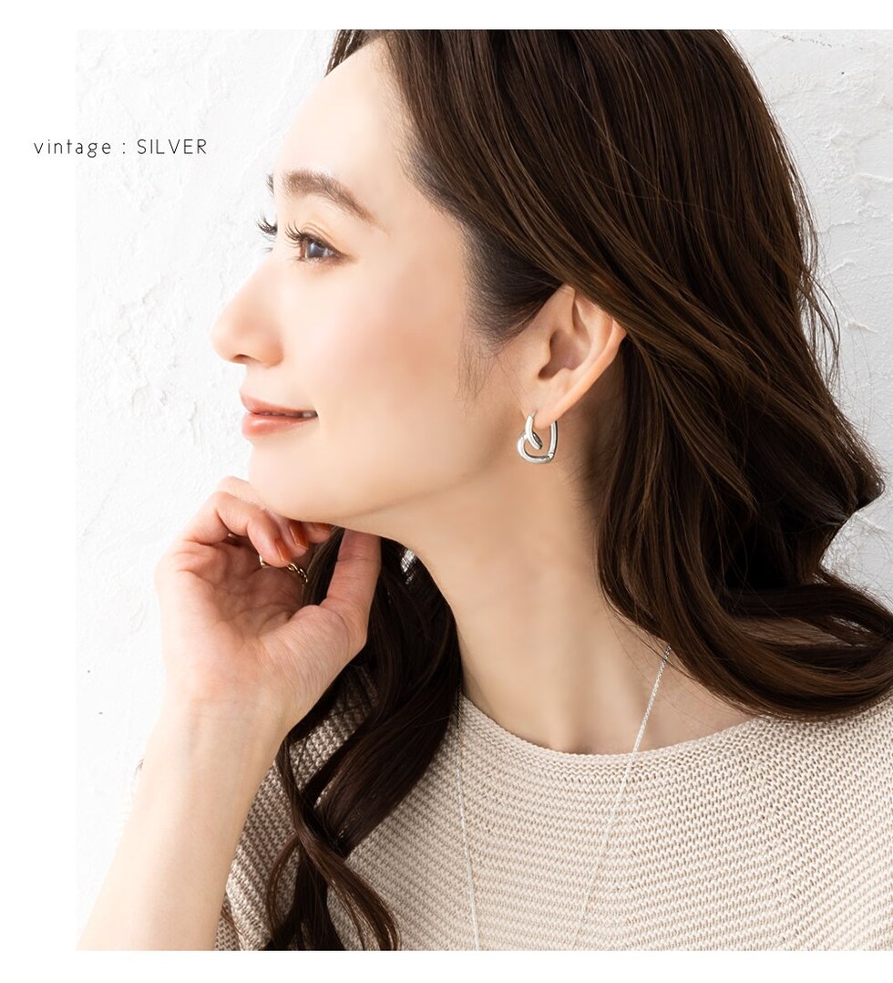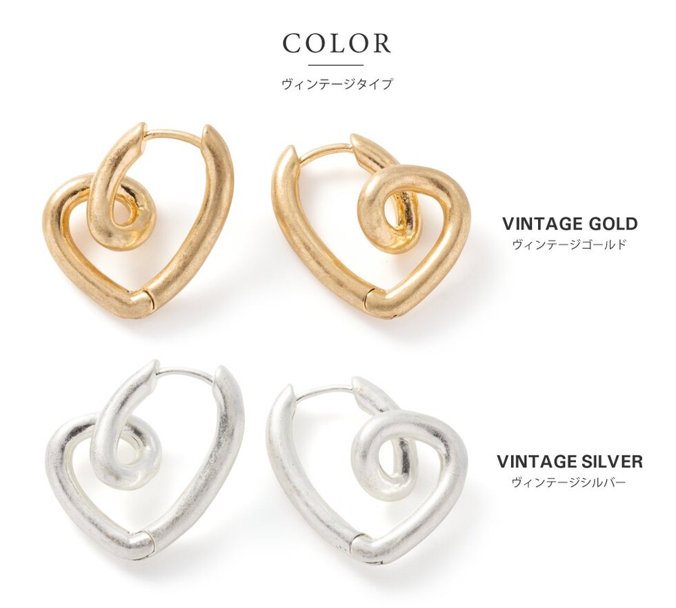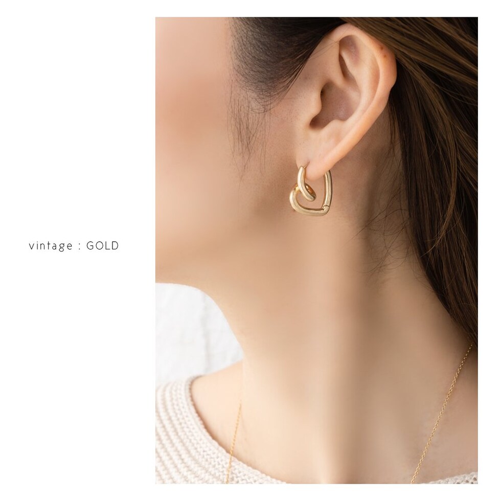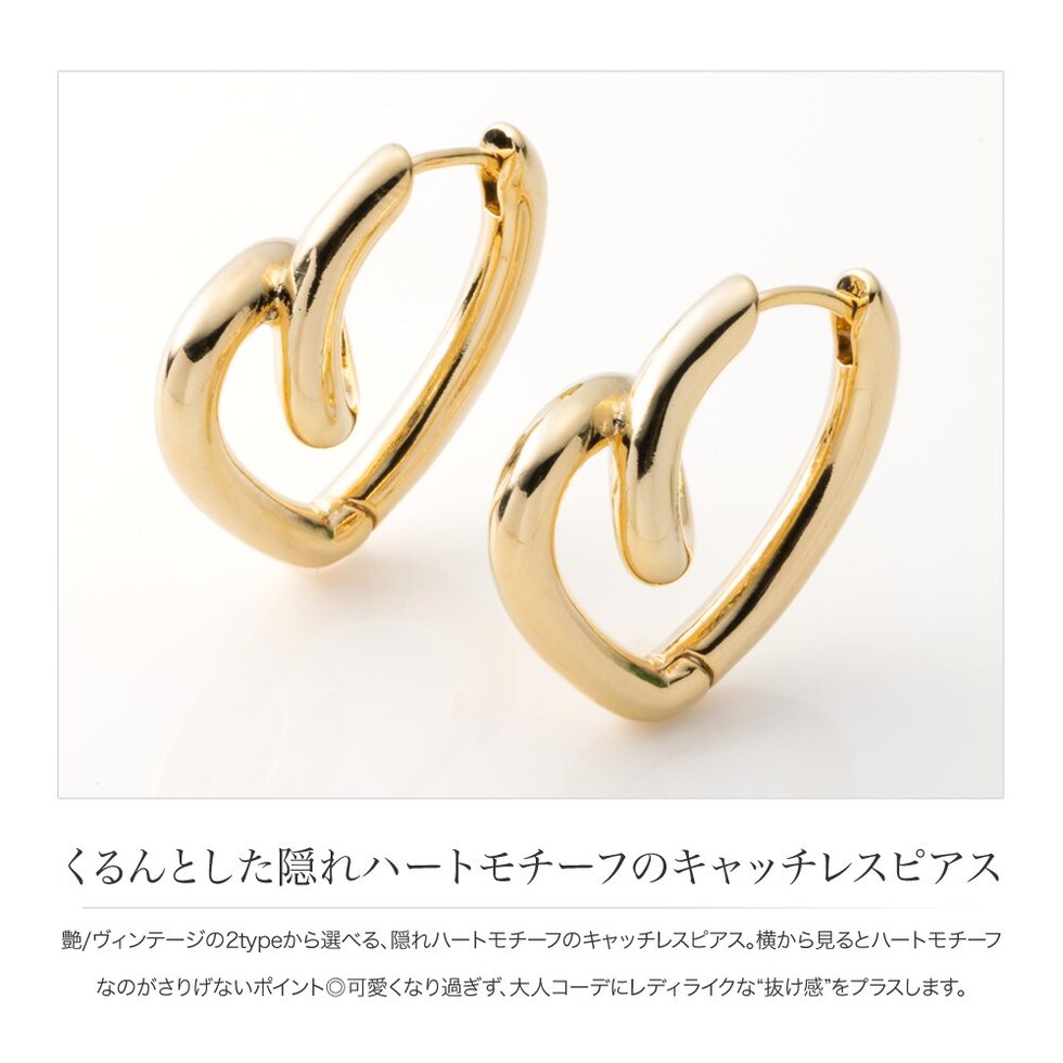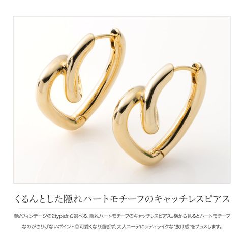 艶/ヴィンテージの2typeから選べる、隠れハートモチーフのキャッチレスピアス。横から見るとハートモチーフなのがさりげないポイント◎可愛くなり過ぎず、大人コーデにレディライクな“抜け感”をプラスします。
