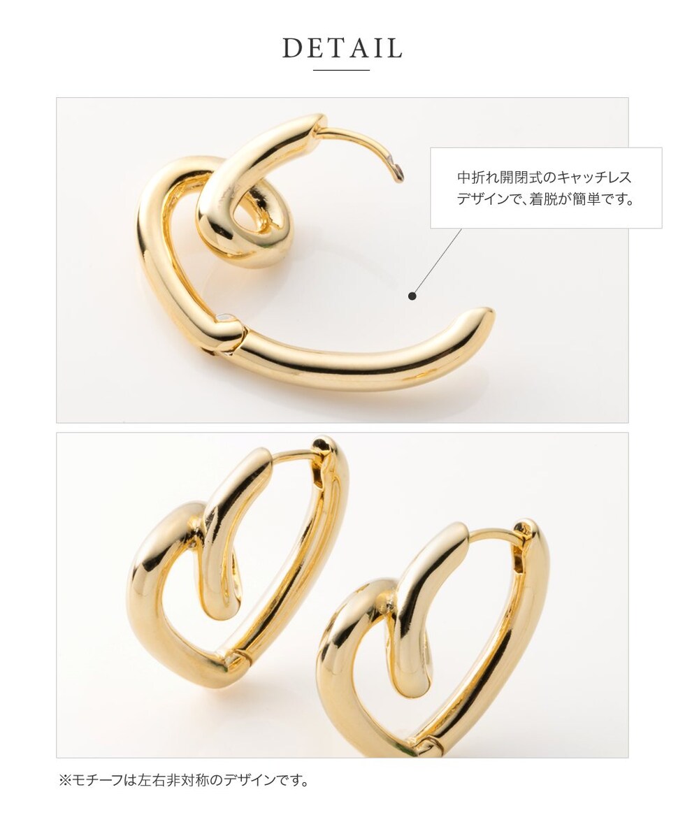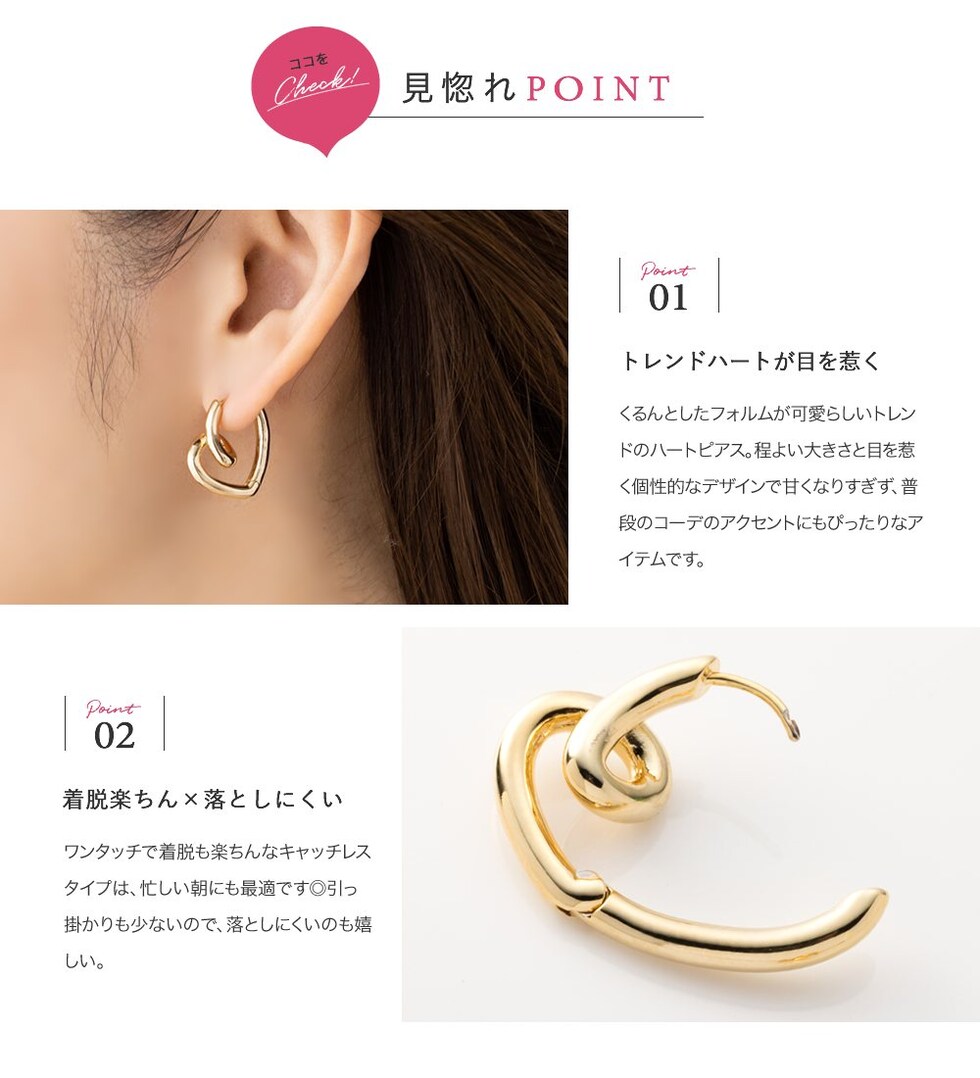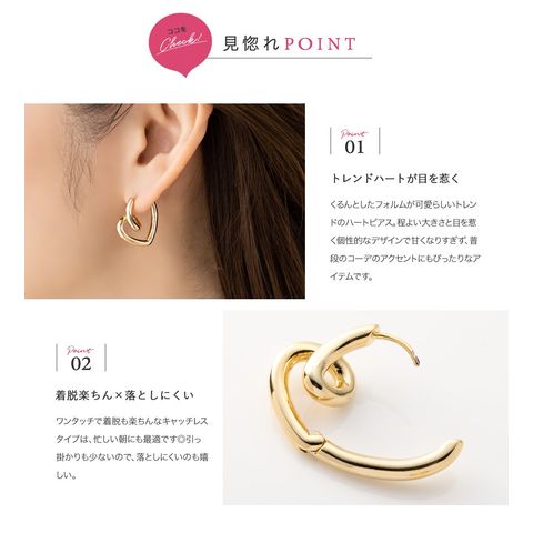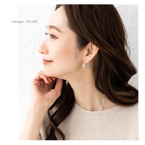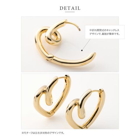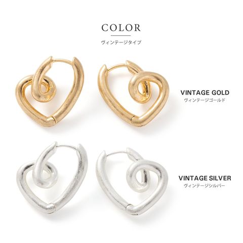 艶/ヴィンテージの2typeから選べる、隠れハートモチーフのキャッチレスピアス。横から見るとハートモチーフなのがさりげないポイント◎可愛くなり過ぎず、大人コーデにレディライクな“抜け感”をプラスします。