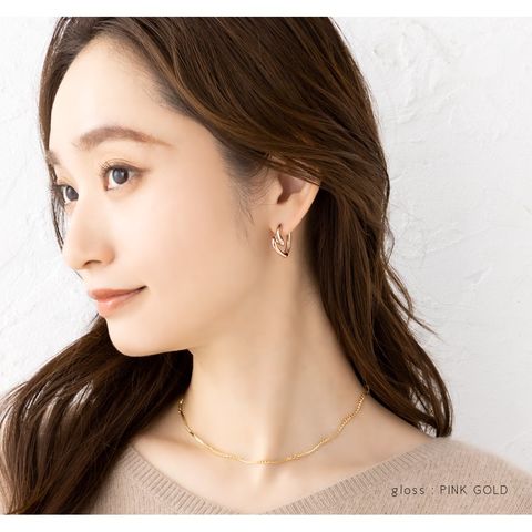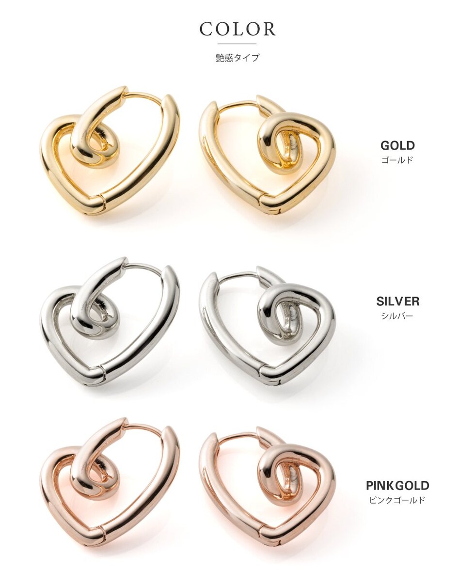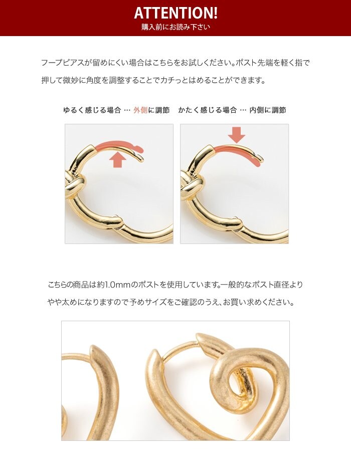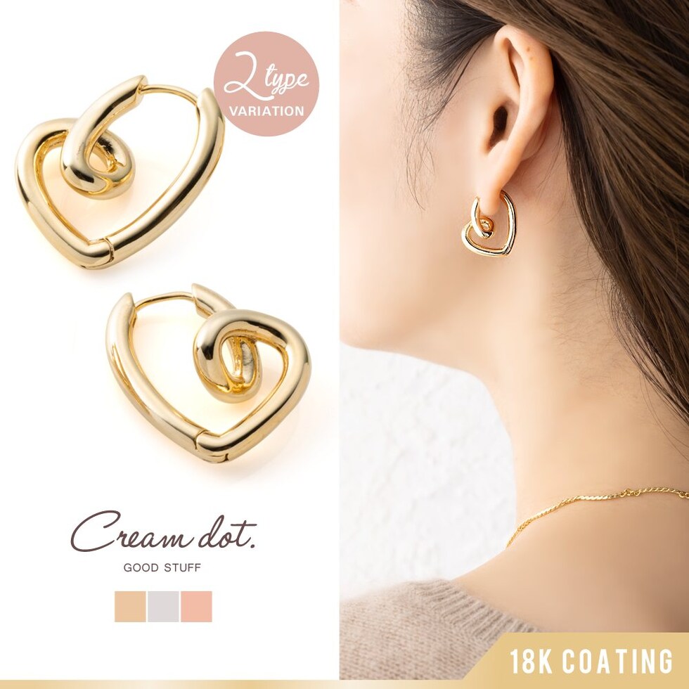 ピアス 金属アレルギー ニッケルフリー レディース フープ ヴィンテージ調 艶消し マット 中折れ キャッチレス 隠れハート ループ cream dot ゆうパケット [ピンクゴールド_ピアス]