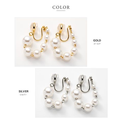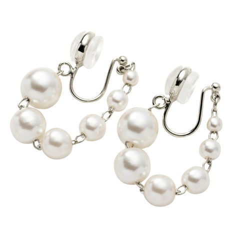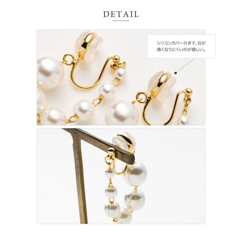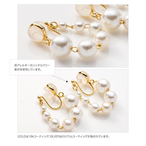 イヤリング 金属アレルギー ニッケルフリー レディース ワイヤーフィット 挟むだけ 見え シリコンカバー パール フープ チェーン 普段使い セレモニー cream dot ゆうパケット [シルバー_イヤリング]