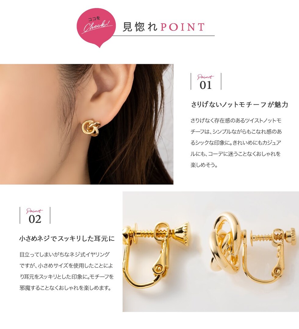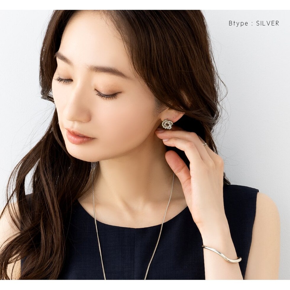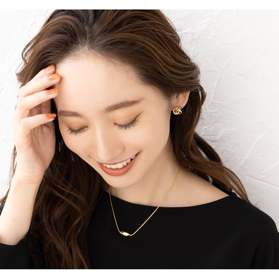 さりげなく存在感のあるツイストノットモチーフは、シンプルながらもこなれ感のあるシックな印象に。きれいめにもカジュアルにも、コーデに迷うことなくおしゃれを楽しめそう。
