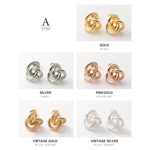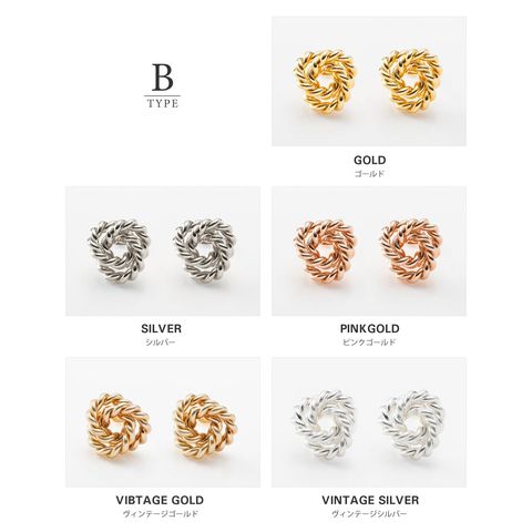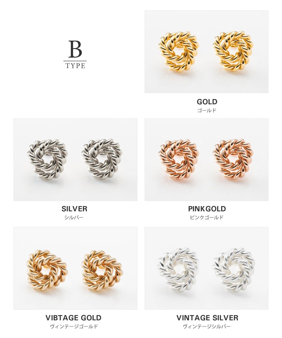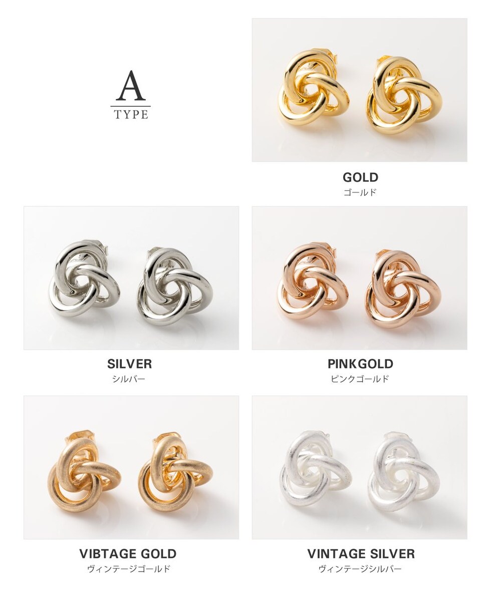ピアス イヤリング 金属アレルギー ニッケルフリー レディース 2タイプ ヴィンテージ調 艶消し マット ネジ式 ツイスト ノット 立体 cream dot ゆうパケット [B:ピンクゴールド_ピアス]