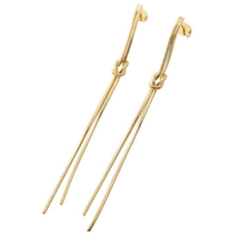 キュっと結んだノットデザインがモダンなスネークチェーンのロングピアス/イヤリング。動くたびに揺れて煌めくチェーンは、お顔周りを明るく華やかにしてくれます。シンプルコーデのアクセントにぴったりなアイテムです。