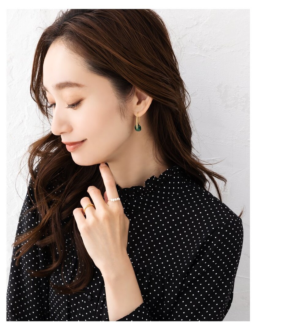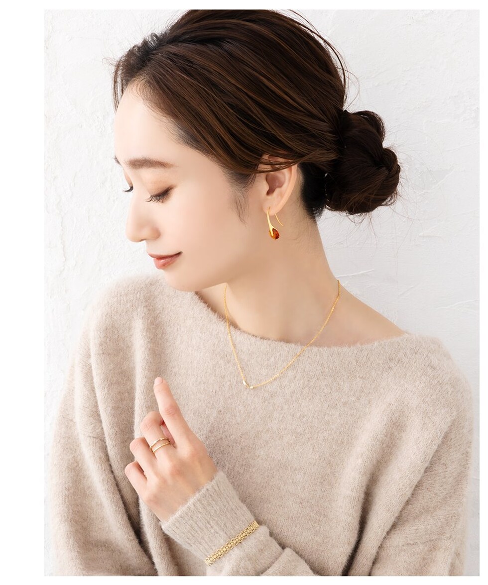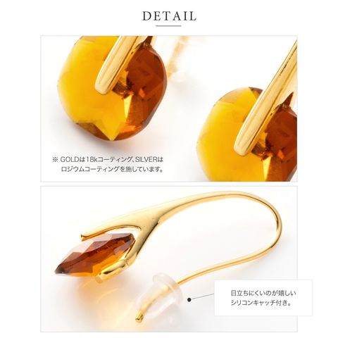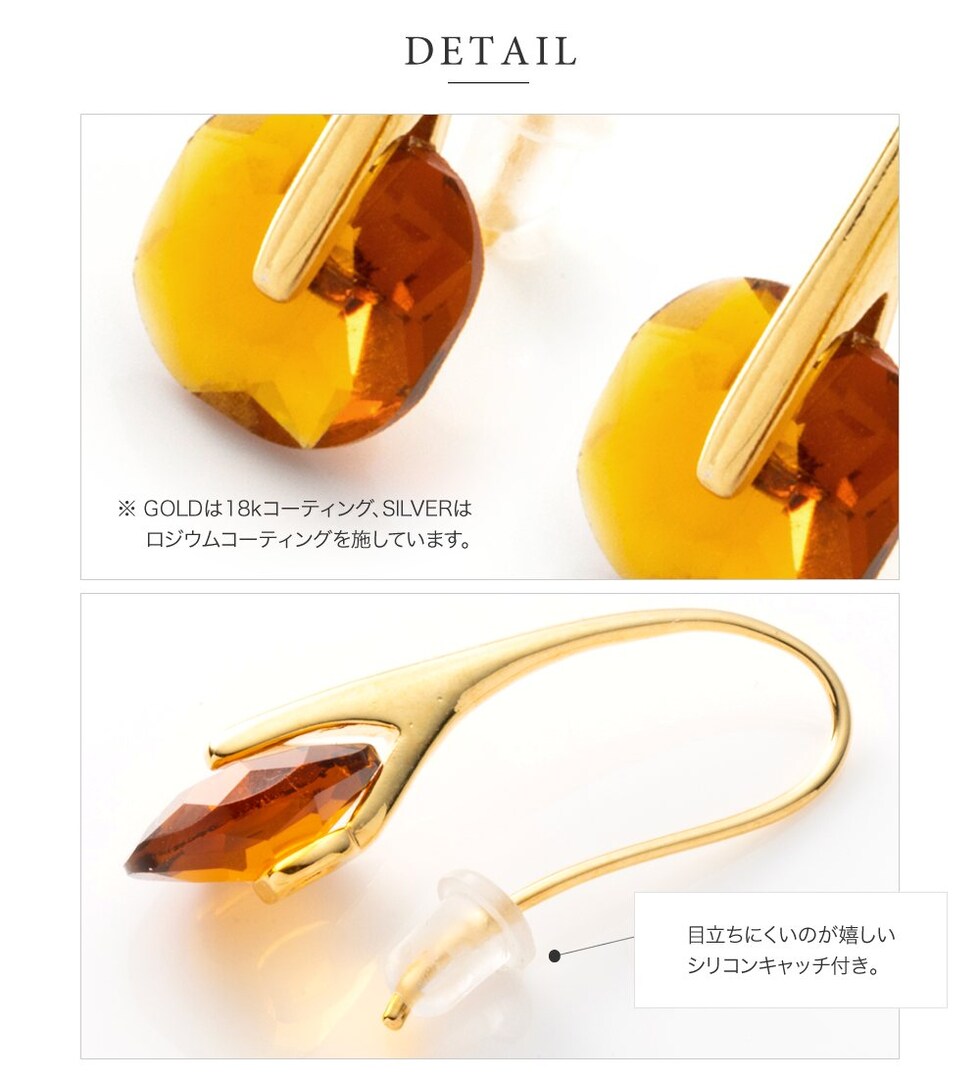人気のドロップフックにカラービジューを挟み込んだ今までにないデザイン。ちょっぴり大ぶりで存在感抜群だけど、落ち着きのあるクリアカラーと緩やかなゴールドラインが大人上品な印象に。