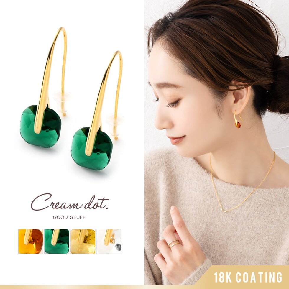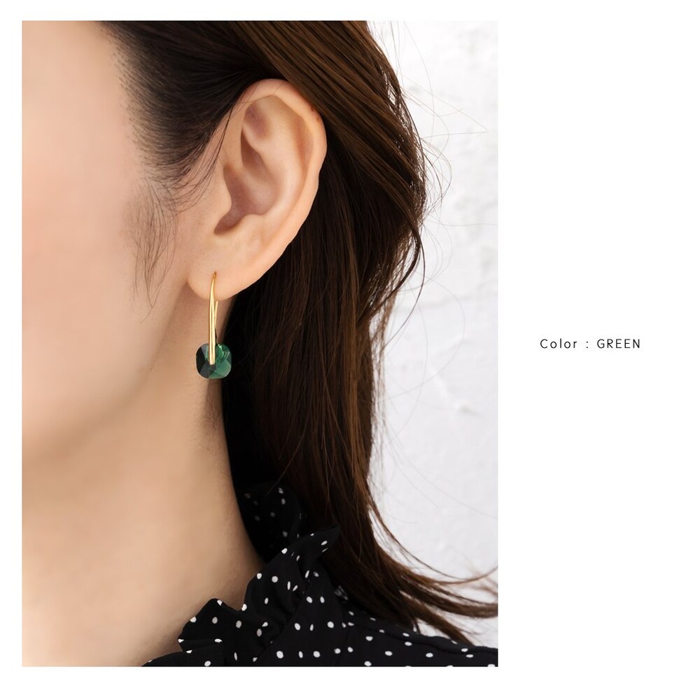 ピアス 金属アレルギー ニッケルフリー レディース フック 大ぶり 大きめ ガラス カラービジュー 多面カット クリア cream dot ゆうパケット [グリーン_ピアス]