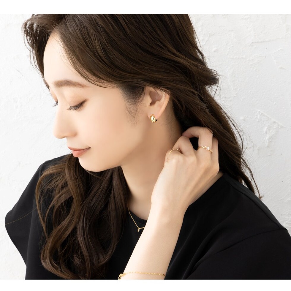 イヤリングのように目立つ金具がないので、耳元をスッキリ飾りピアス見えする新定番のカフイヤリング。想像以上に落ちにくいのも嬉しい。