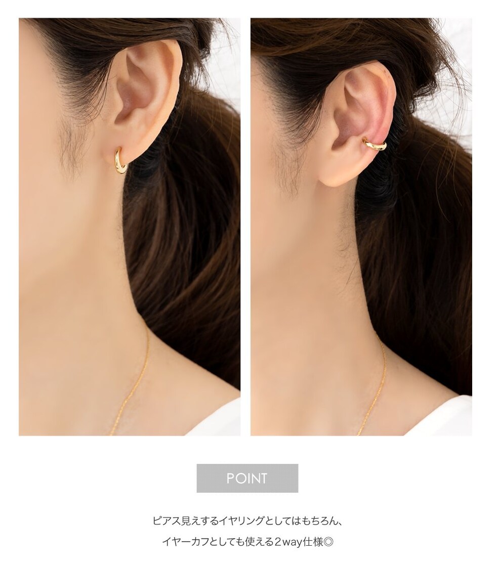 カフイヤリングだけでなくイヤーカフとしてもアレンジを楽しめる2wayアイテム。バネ式だから耳たぶの厚みを気にせずご着用頂けます。