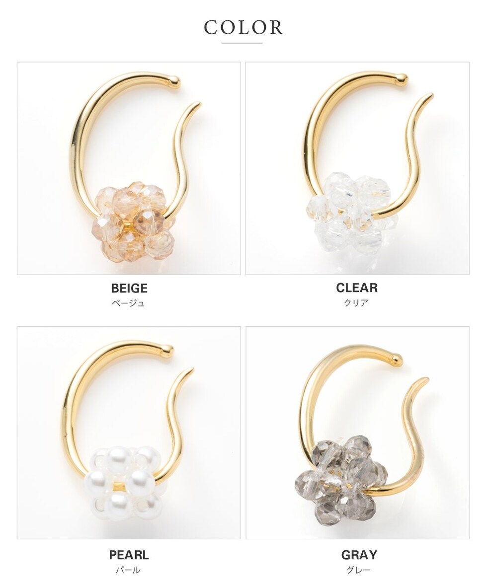 多角カットビーズ/パールをたくさん連ねたグレープのようなモチーフとメタルを組み合わせた片耳用イヤーカフ。モチーフを取り外しても使える2WAYデザインが嬉しい仕様◎シンプルコーデのアクセント使いにオススメです。