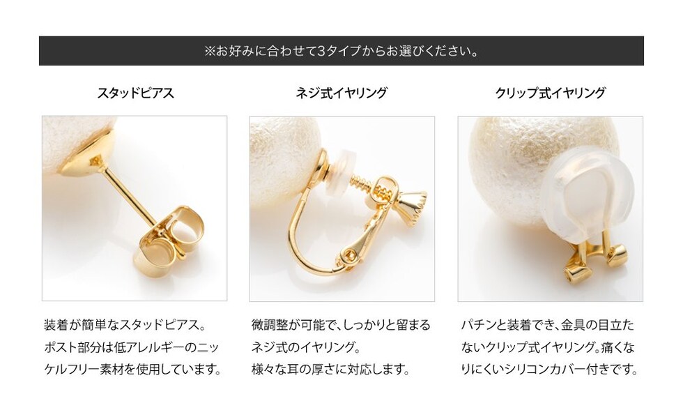 ピアス イヤリング 金属アレルギー ニッケルフリー レディース ネジ式 クリップ式 スタッド コットンパール ビッグパール 大粒 大きめ ナチュラル cream dot ゆうパケット [ナチュラル_ピアス]