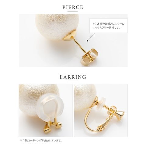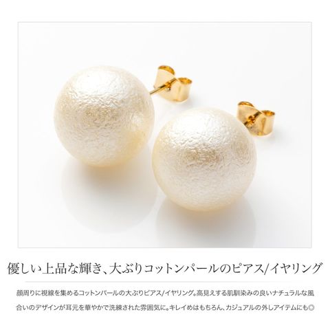 顔周りに視線を集めるコットンパールの大ぶりピアス/イヤリング。高見えする肌馴染みの良いナチュラルな風合いのデザインが耳元を華やかで洗練された雰囲気に。キレイめはもちろん、カジュアルの外しアイテムにも◎