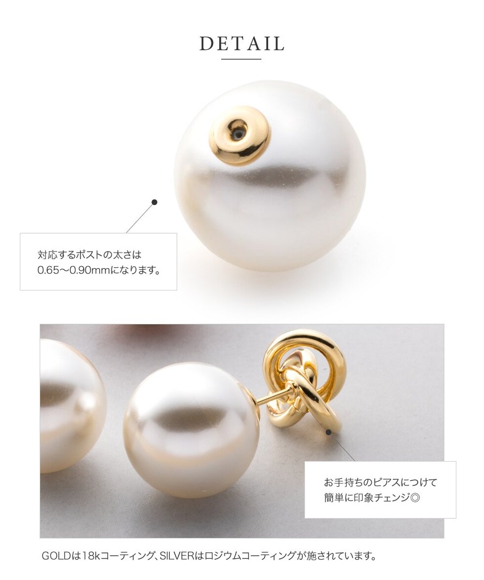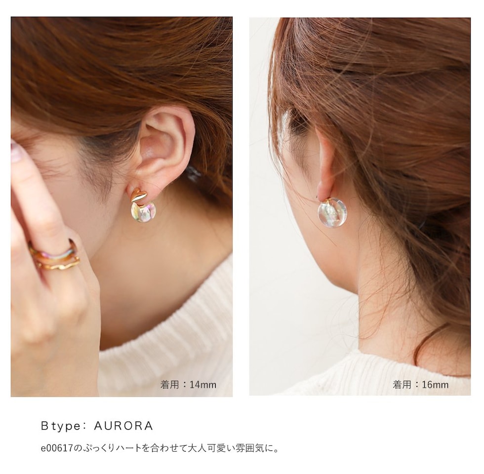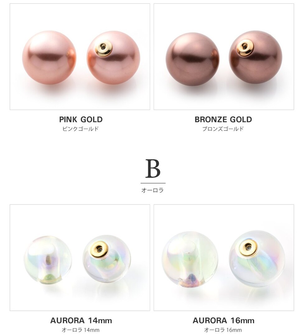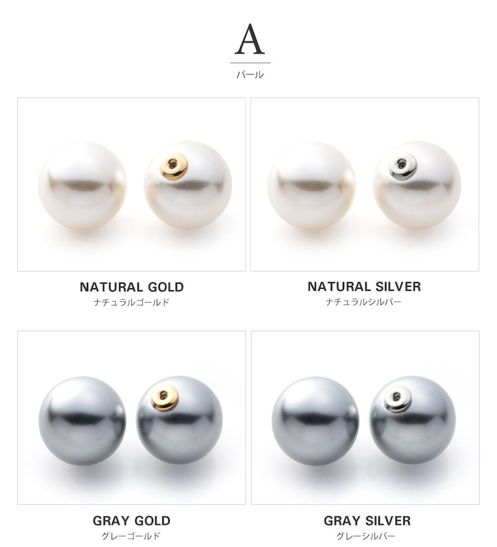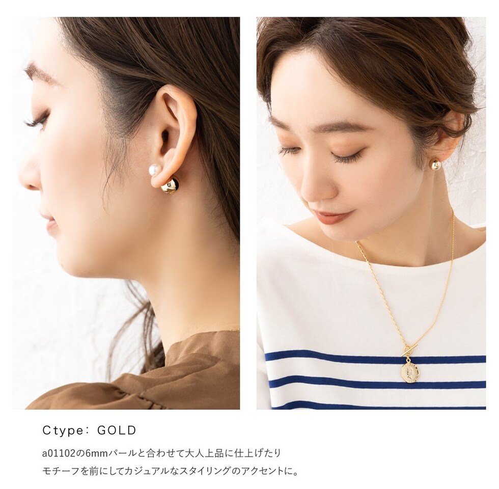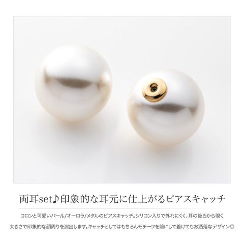 コロンと可愛いパール/オーロラ/メタルのピアスキャッチ。シリコン入りで外れにくく、耳の後ろから覗く大きさで印象的な顔周りを演出します。キャッチとしてはもちろんモチーフを前にして着けてもお洒落なデザイン◎