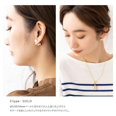 耳の後ろから覗く大きさで、印象的な顔周りを演出。オケージョンはもちろん、Tシャツなどと合わせてカジュアルダウンした普段使いにも、新鮮な雰囲気で楽しめます♪