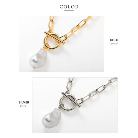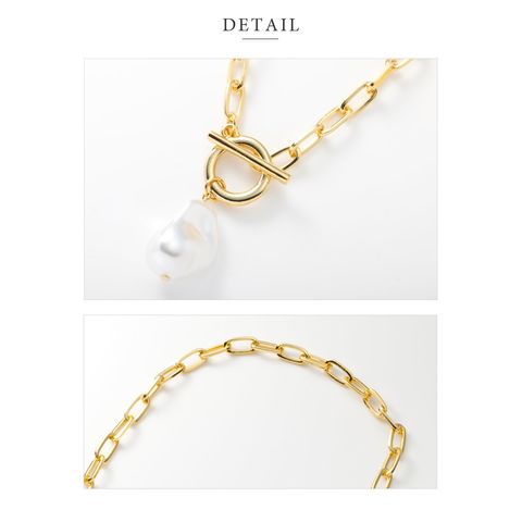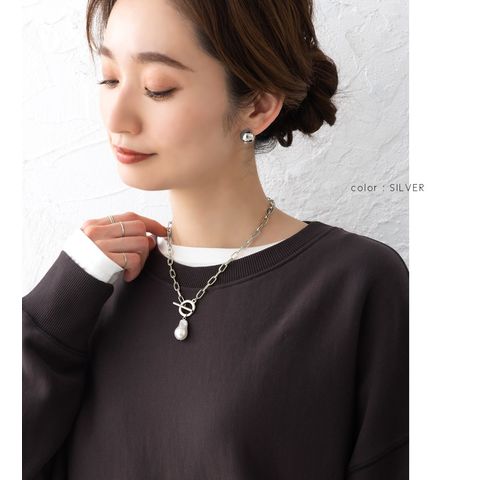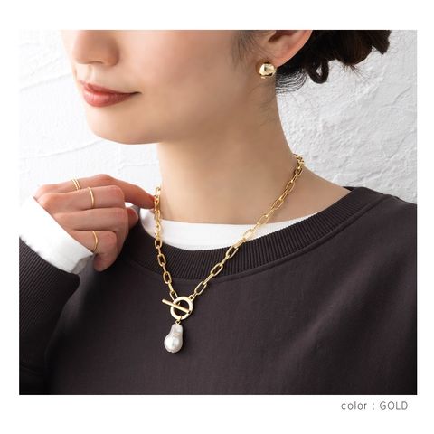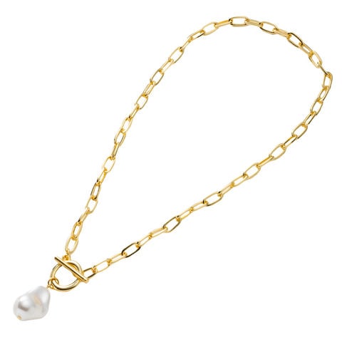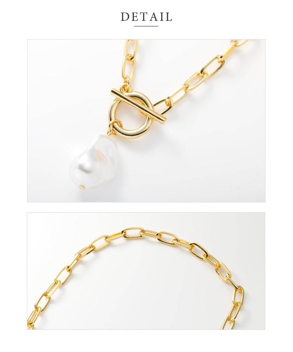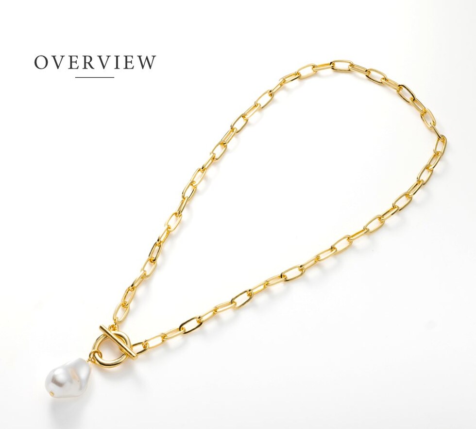存在感のあるバロック風パールとオーバルチェーンがトレンドライクなマンテルネックレス。程よい重厚感のあるチェーンと艶めくパールがモードな雰囲気を演出。シンプルコーデやカジュアルコーデのアクセントにぴったり◎