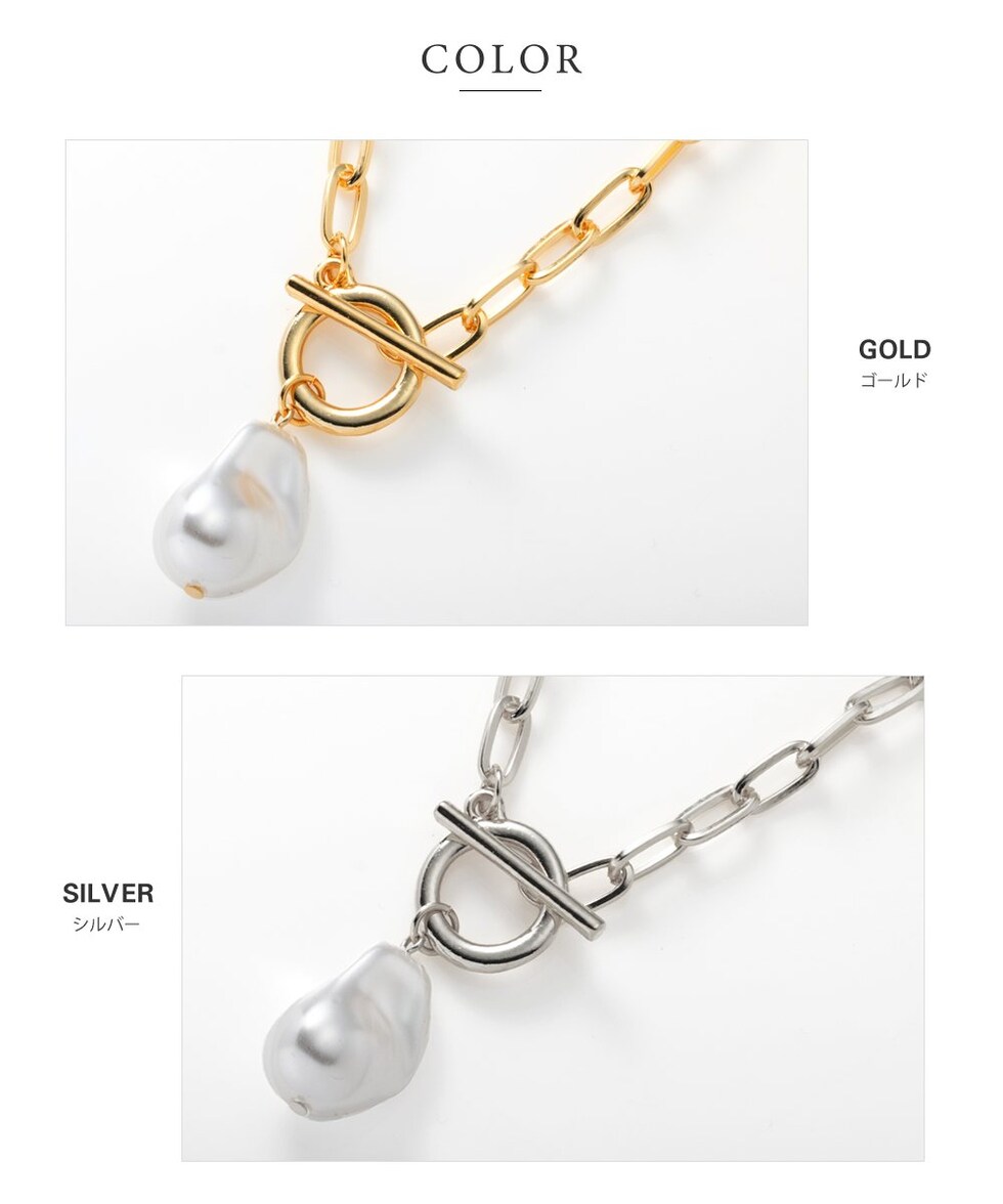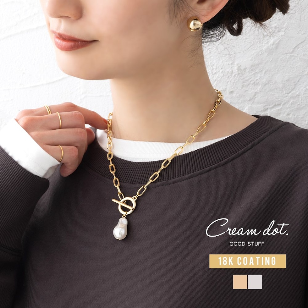 ネックレス 金属アレルギー ニッケルフリー レディース ショート オーバルチェーン マンテル バロックパール cream dot ゆうパケット [ゴールド_ワンサイズ]