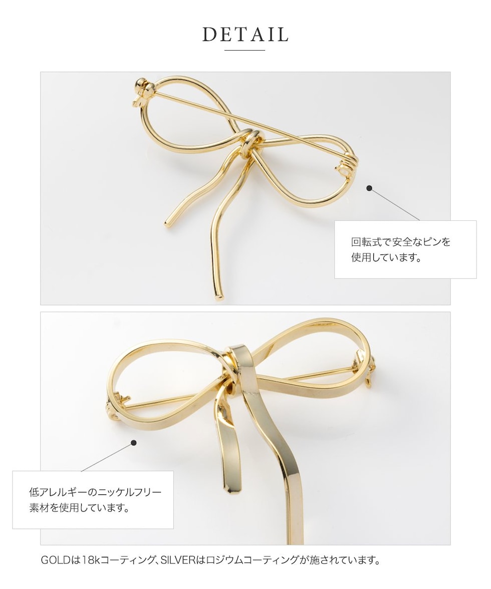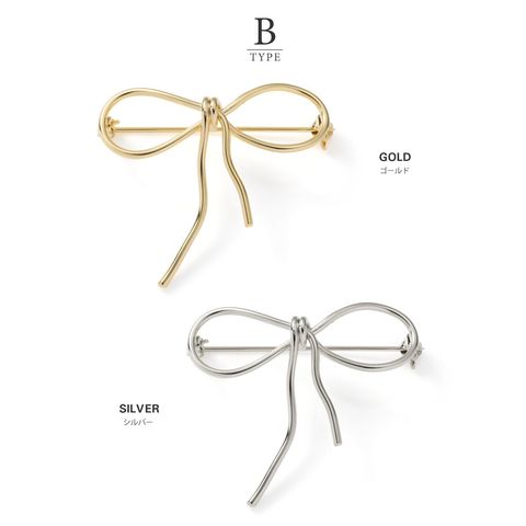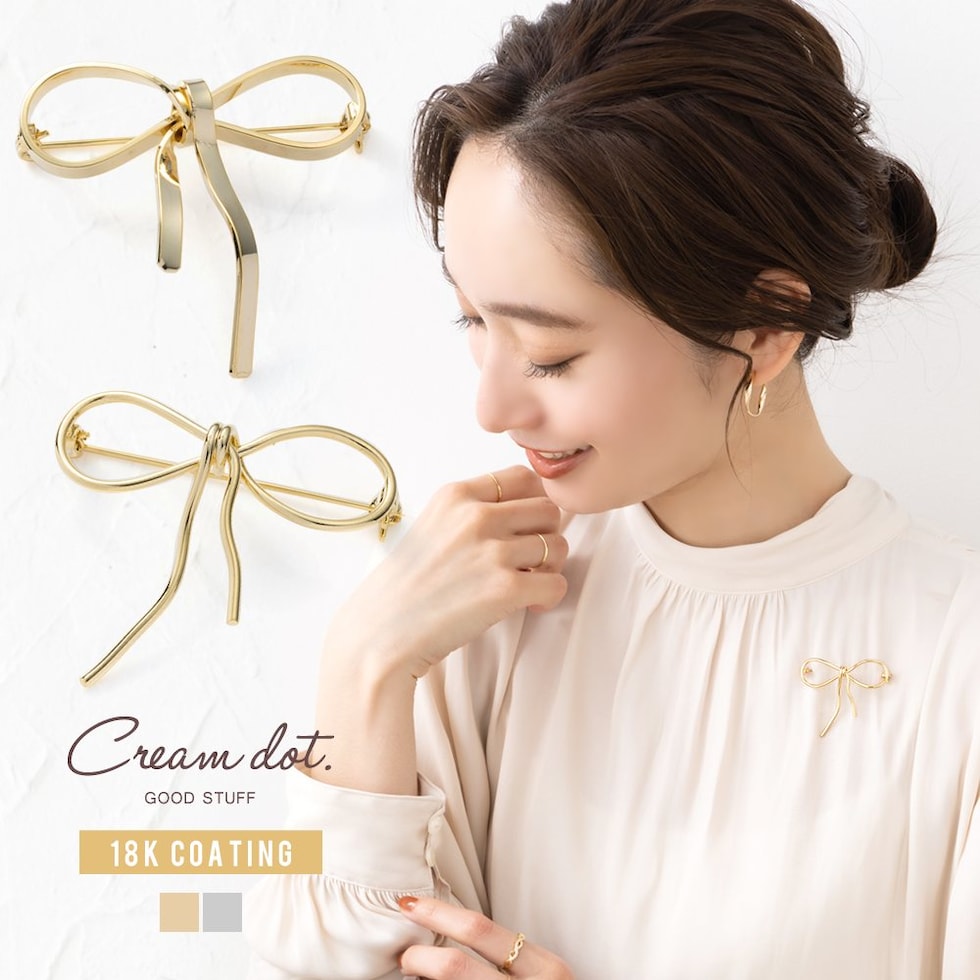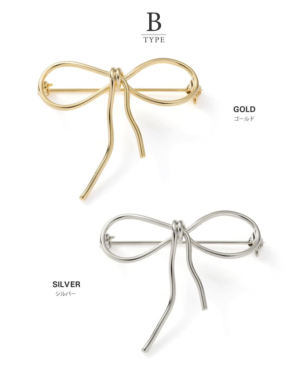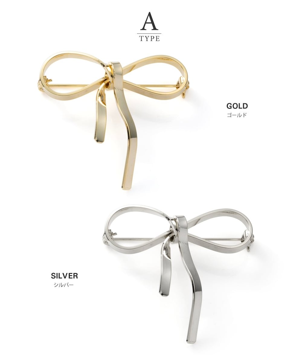ブローチ フォーマル 2タイプ リボン メタル 普段使い ピン cream dot ゆうパケット [B:シルバー_ワンサイズ]