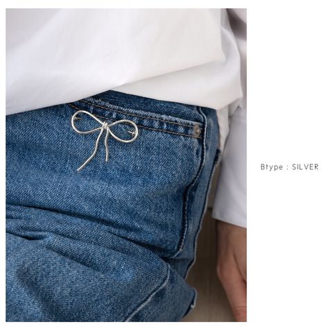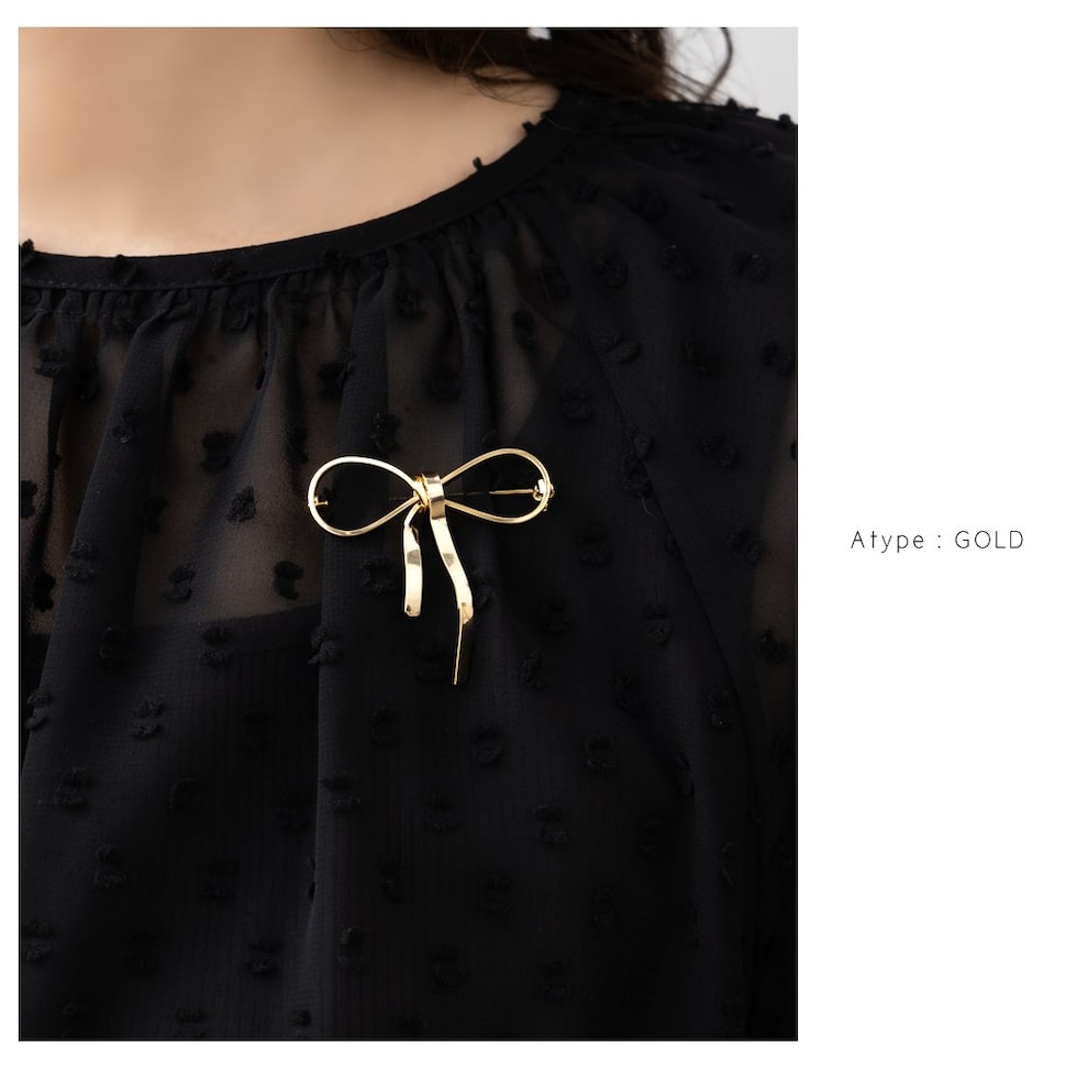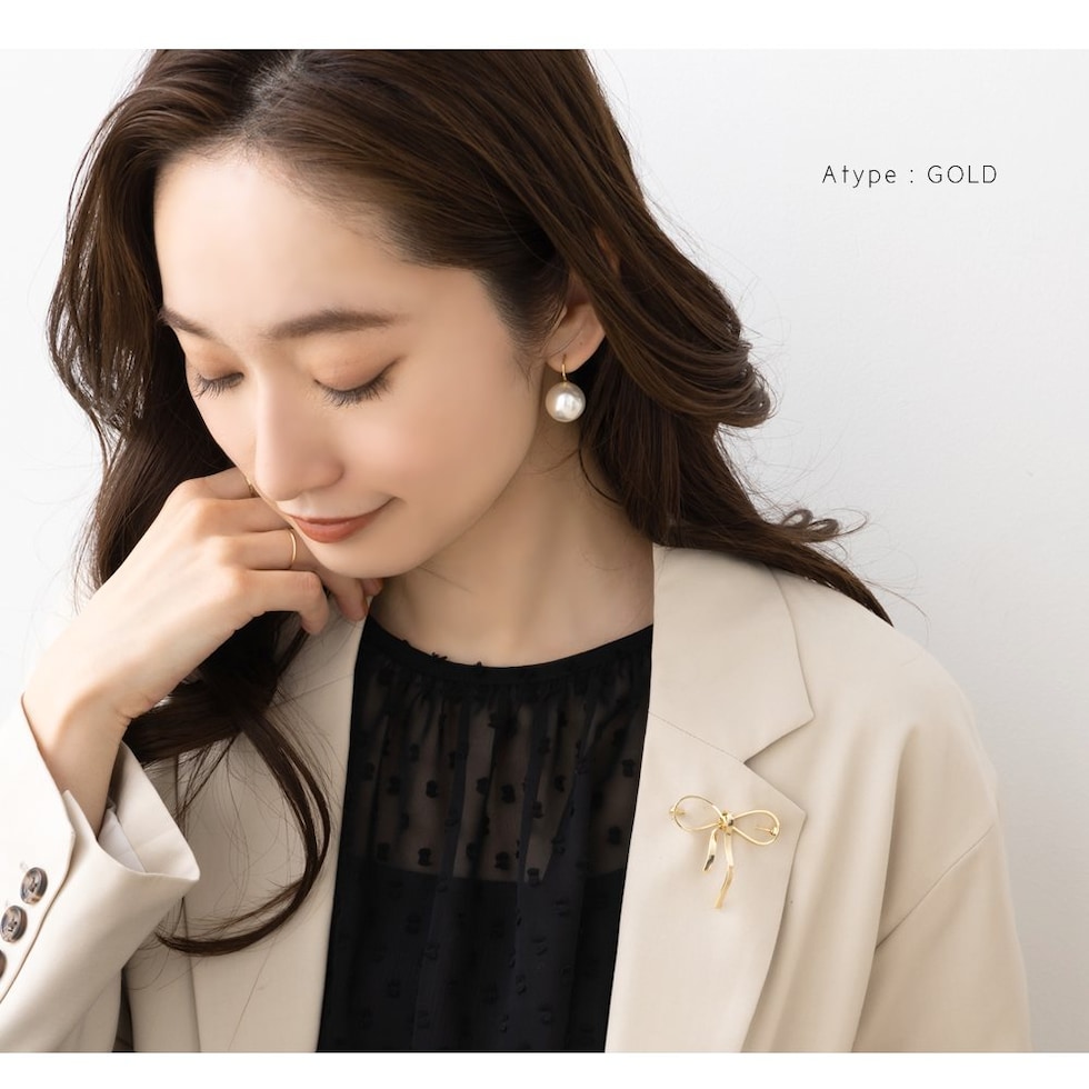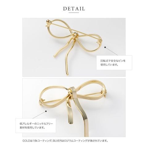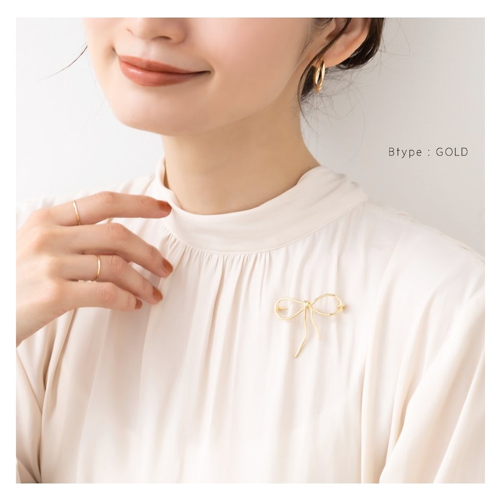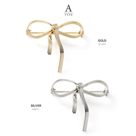 ブローチ フォーマル 2タイプ リボン メタル 普段使い ピン cream dot ゆうパケット [B:シルバー_ワンサイズ]