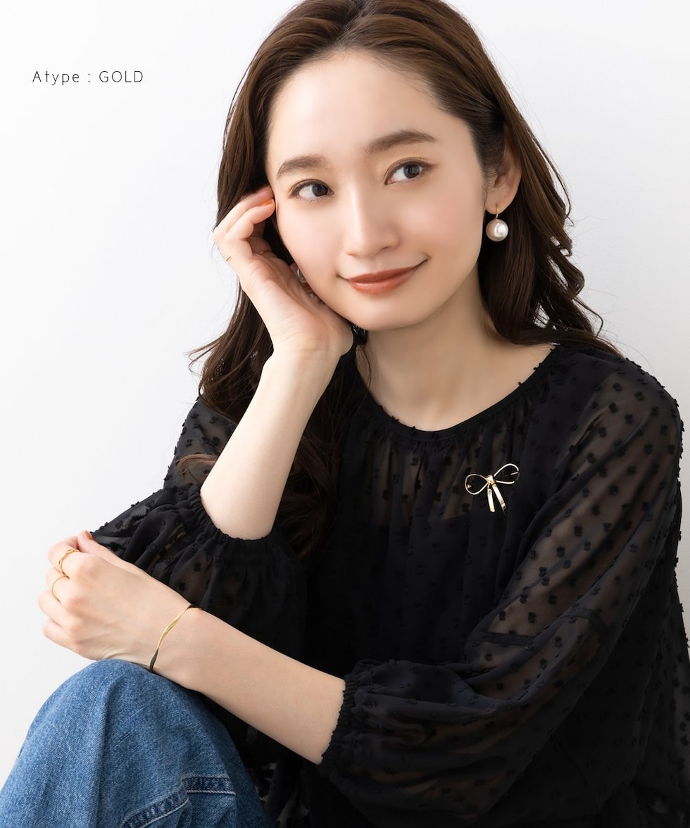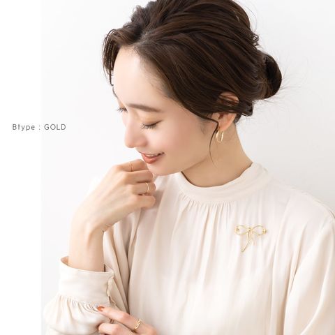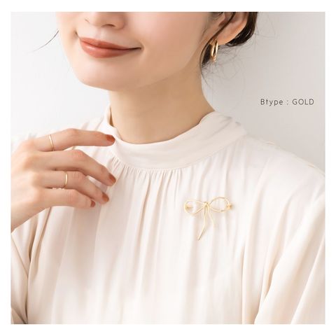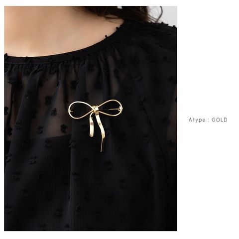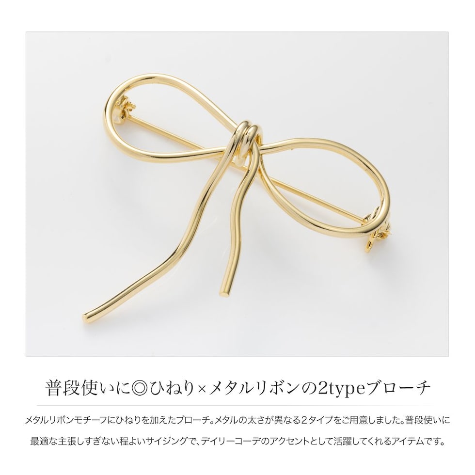 メタルリボンモチーフにひねりを加えたブローチ。メタルの太さの異なる2タイプをご用意しました。普段使いに最適な主張しすぎない程よいサイジングで、デイリーコーデのアクセントとして活躍してくれるアイテムです。