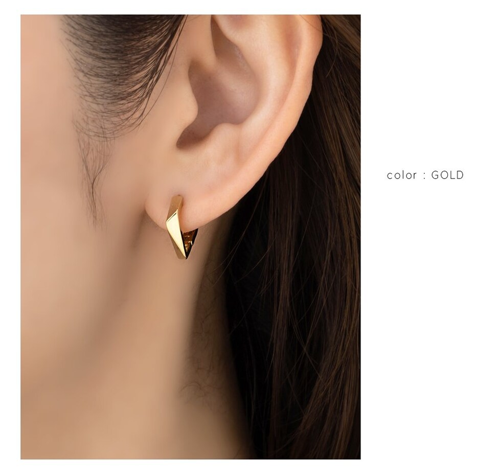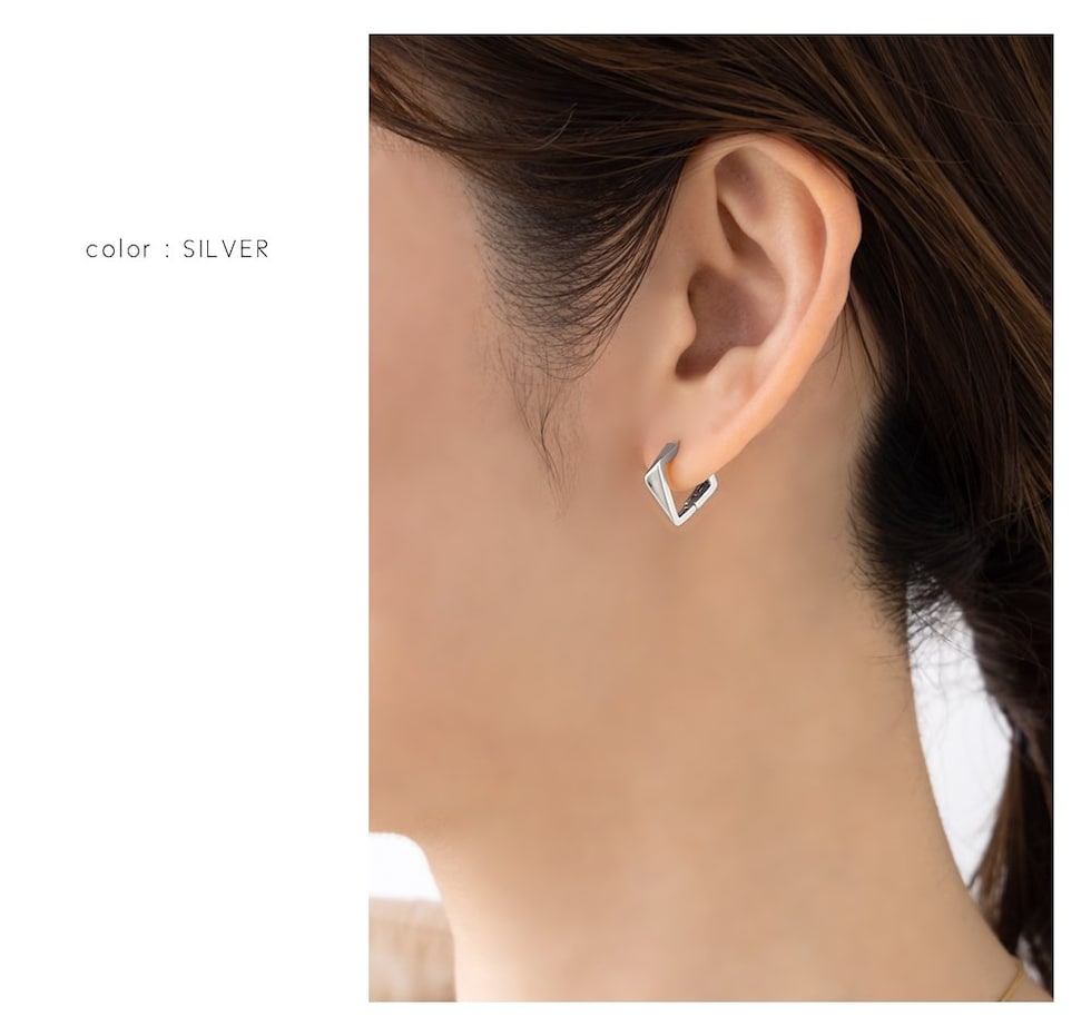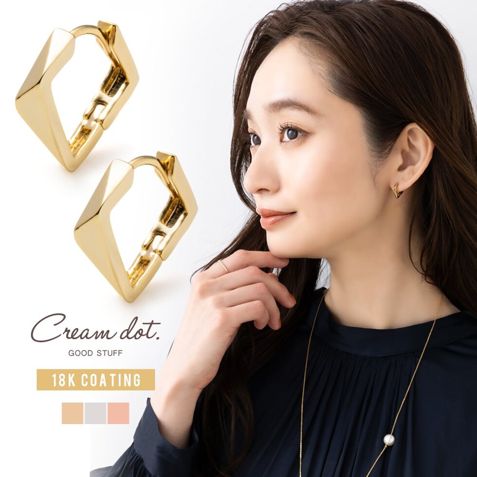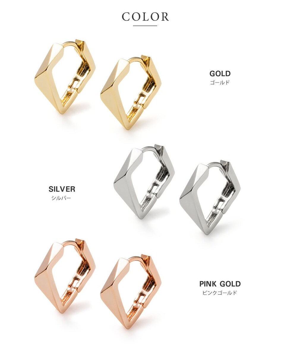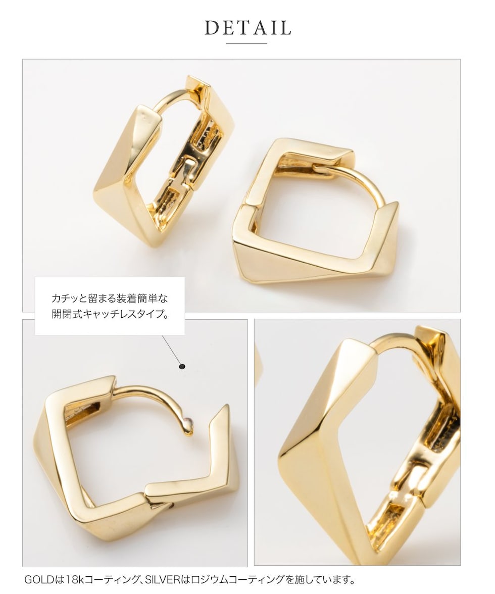 ピアス 金属アレルギー ニッケルフリー レディース フープ 中折れ キャッチレス 開閉式 ひし形 多面カット 歪 四角 cream dot ゆうパケット [シルバー_ピアス]
