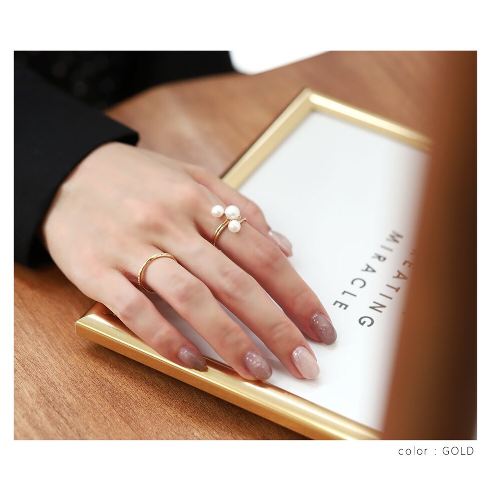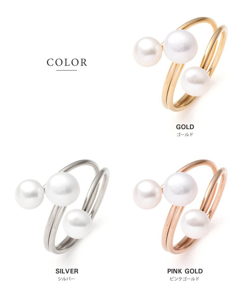 リング 指輪 金属アレルギー ニッケルフリー レディース 淡水パール 3連 オープンリング サイズ調整 ワイヤー cream dot ゆうパケット [ゴールド_フリーサイズ]