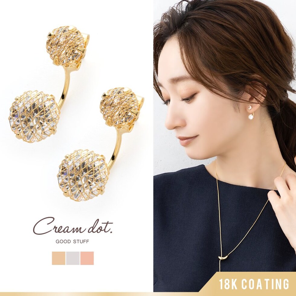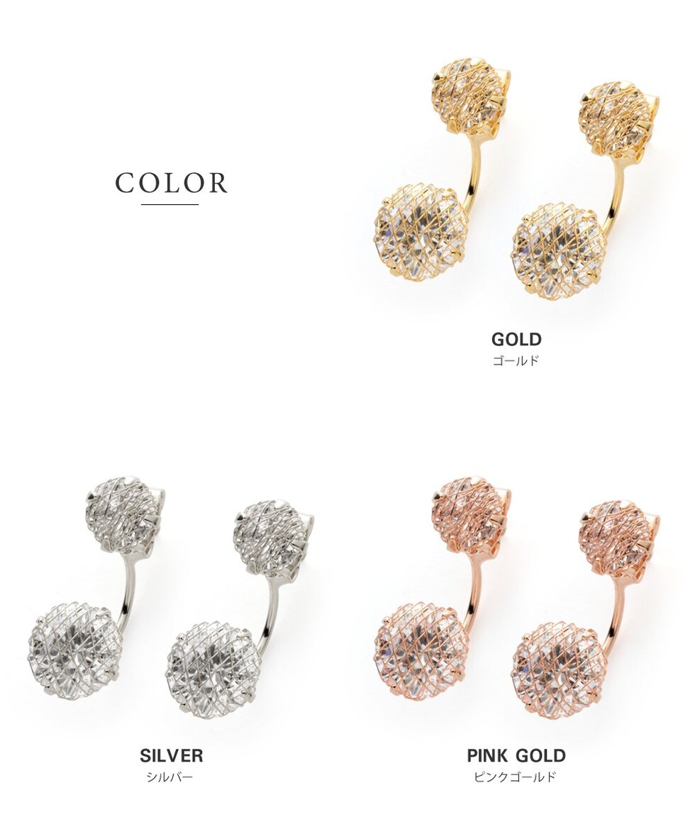 繊細な透かしワイヤーでビジューを包み込んだデザインは、大人の品格漂う洗練された印象に。光に反射し優美に煌めくダブルビジューが、耳元を華やかに魅せてくれます。
