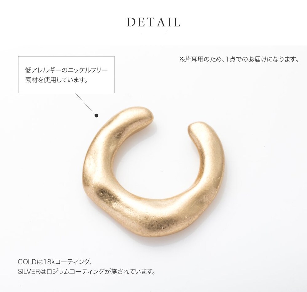 くすんだヴィンテージ風の質感がこなれ感を演出する片耳用イヤーカフ。シンプル&程良いサイズ感なので重ね付けにもおすすめ。コーデのジャンルを問わず合わせやすい、使い勝手抜群のアイテムです。
