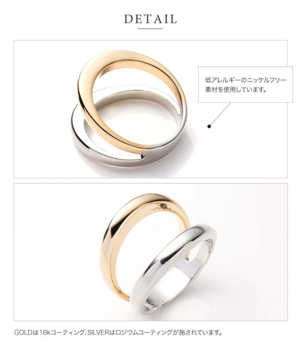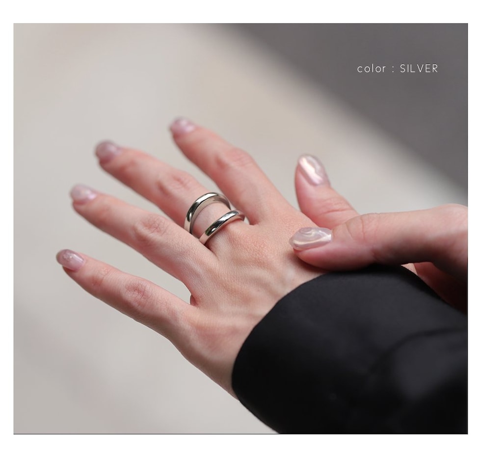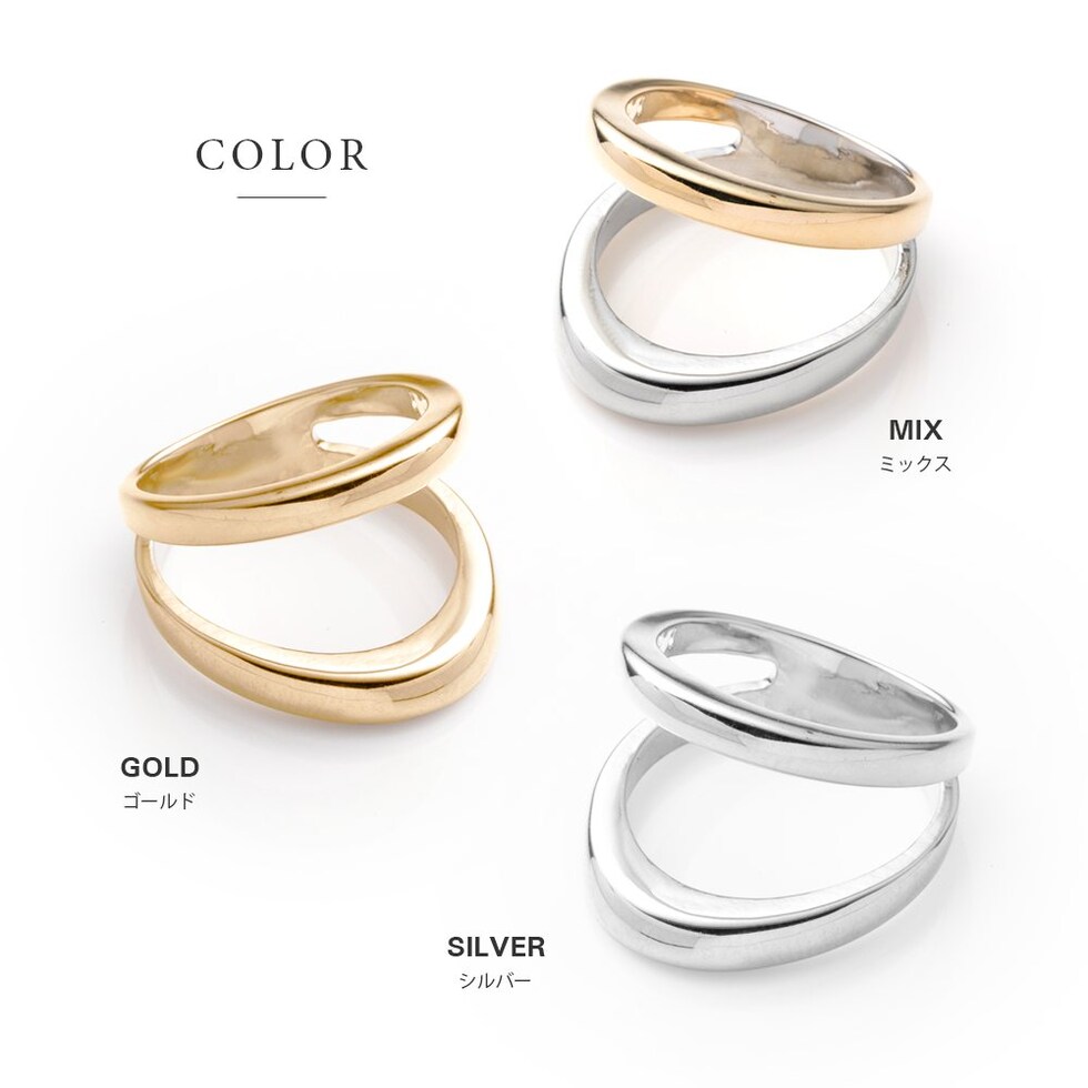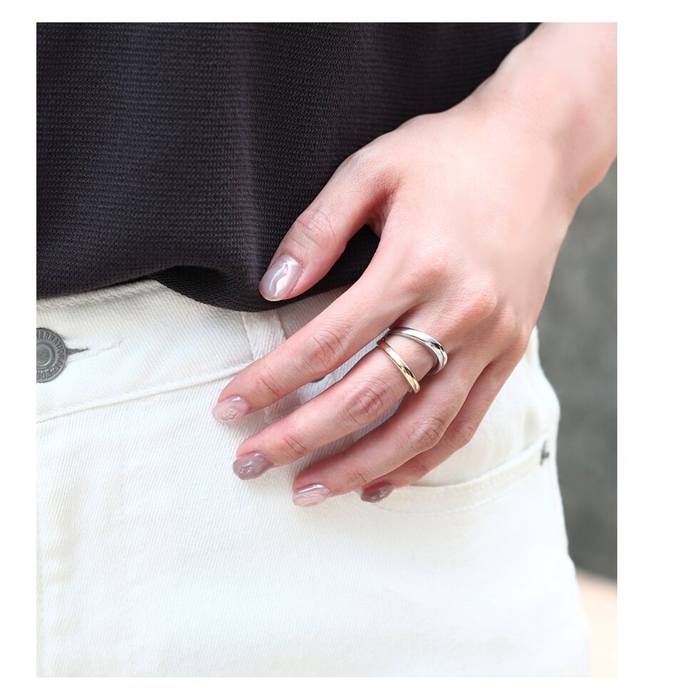 重ねづけしているようなレイヤードデザインのダブルラインリング。ミックスカラーになったデザインが手元に程よい個性とこなれ感をプラスします。シンプルなスタイリングのアクセント使いにもおすすめ。