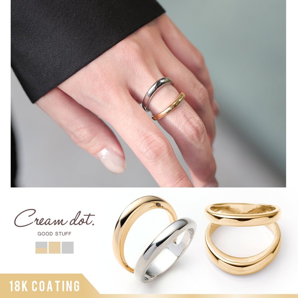 リング 指輪 金属アレルギー ニッケルフリー レディース ダブルライン コンビカラー バイカラー cream dot ゆうパケット [ゴールド_12号]