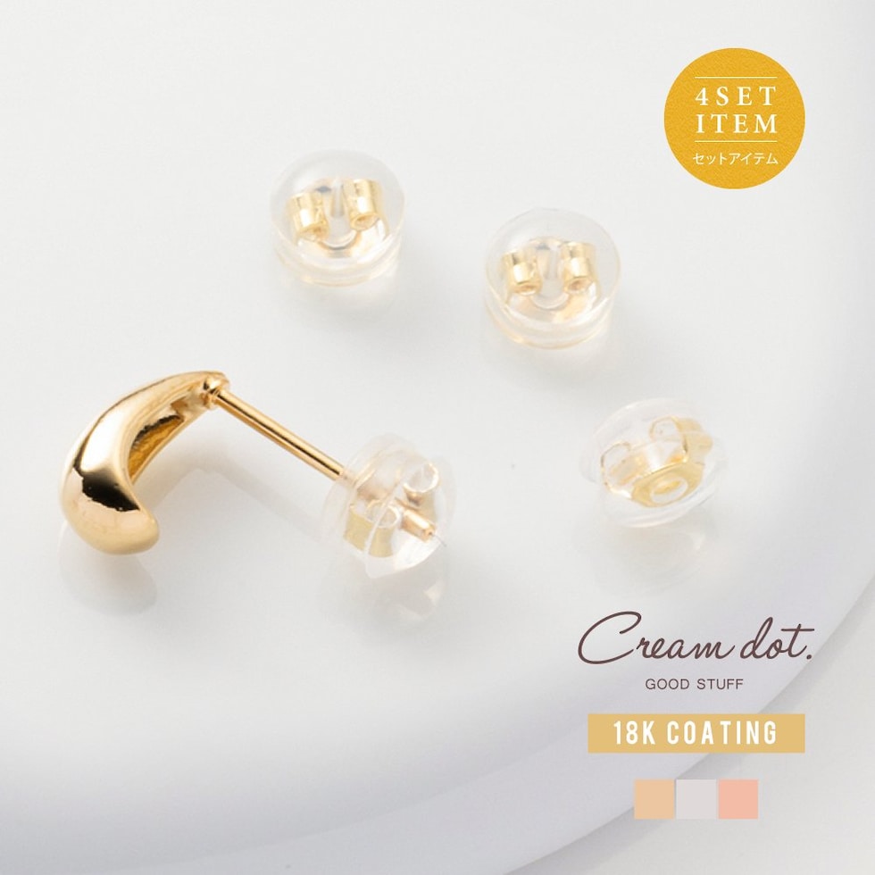 ピアス 金属アレルギー ニッケルフリー レディース 4個セット キャッチ 落ちない 2ペア 4個入り キャッチ はずれにくい シリコンキャッチ cream dot ゆうパケット [シルバー_アソート]