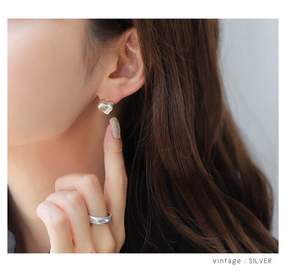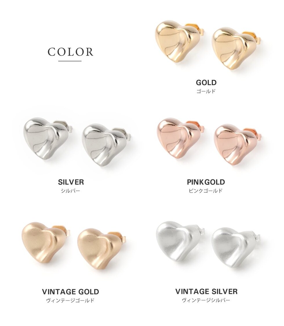 ニュアンスのあるぷっくりメタルが大人可愛いハートピアス/イヤリング。ワンポイントにちょうど良いサイズで顔周りに上品な煌きをプラス。艶orヴィンテージから選べる質感で幅広く活躍してくれます♪