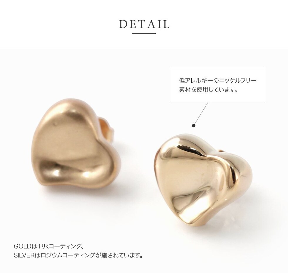 ニュアンス感たっぷりなハートモチーフは、シンプルなメタル素材で甘くなり過ぎず大人可愛い印象に。「ハートは好きだけど子供っぽくなるからちょっと…」という方にもおすすめのアイテムです。