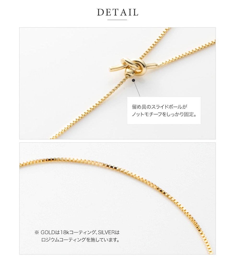 しなやかなチェーンに2つのノットモチーフを合わせたデザインが、上品で大人っぽい印象に。シンプルだけどこなれ感のあるシルエットが、洗練されたスタイルに仕上げてくれます。