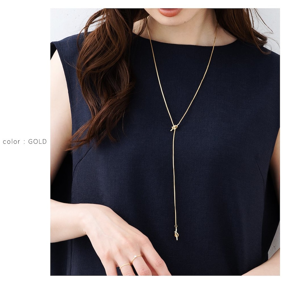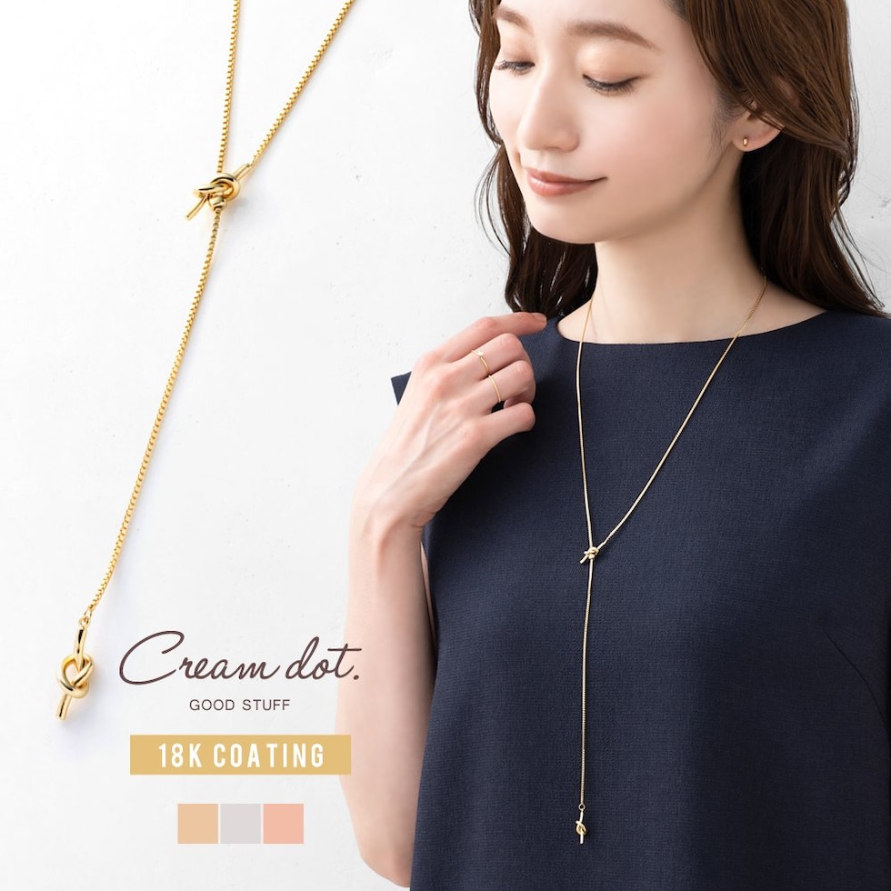 ネックレス 金属アレルギー ニッケルフリー レディース ロング ラリエット y字 スライド式 ベネチアンチェーン ノット 結び目 cream dot ゆうパケット [ゴールド_ワンサイズ]