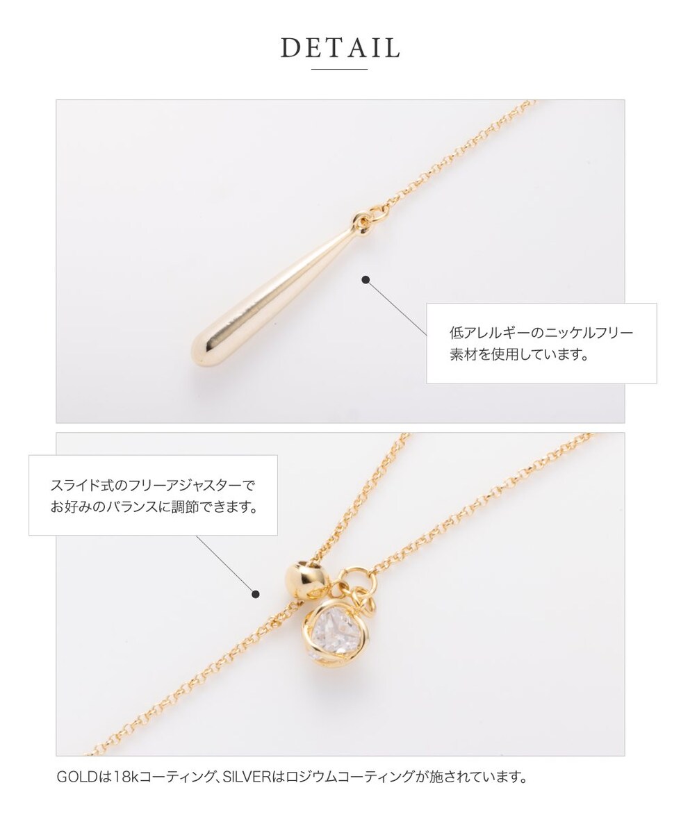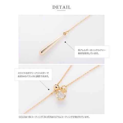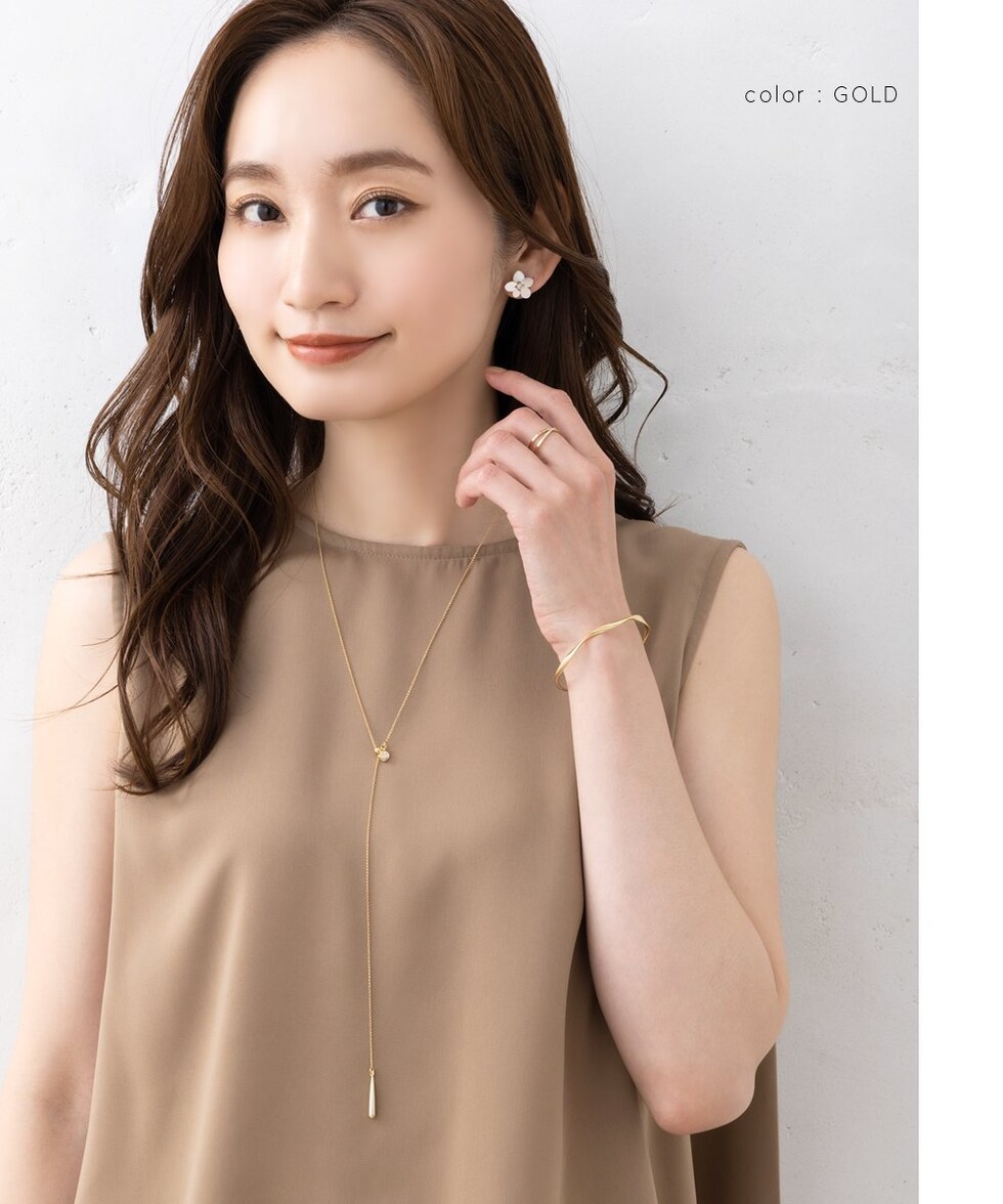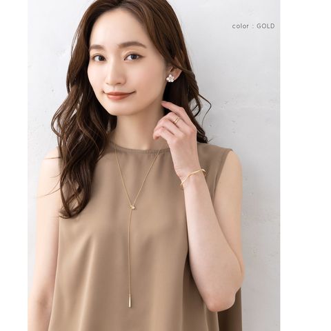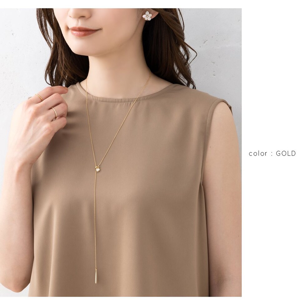 ネックレス 金属アレルギー ニッケルフリー レディース ラリエット ロング チェーン ワイヤービジュー ドロップ メタルボール 長さ調節 cream dot ゆうパケット [ゴールド_ワンサイズ]