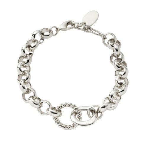 ツイストデザインとオーバル型のダブルリングにワイドサークルチェーンを合わせたブレスレット。艶ありとヴィンテージの2タイプをご用意しました。絶妙なボリューム感がひと味違う洗練された手元を演出してくれます。