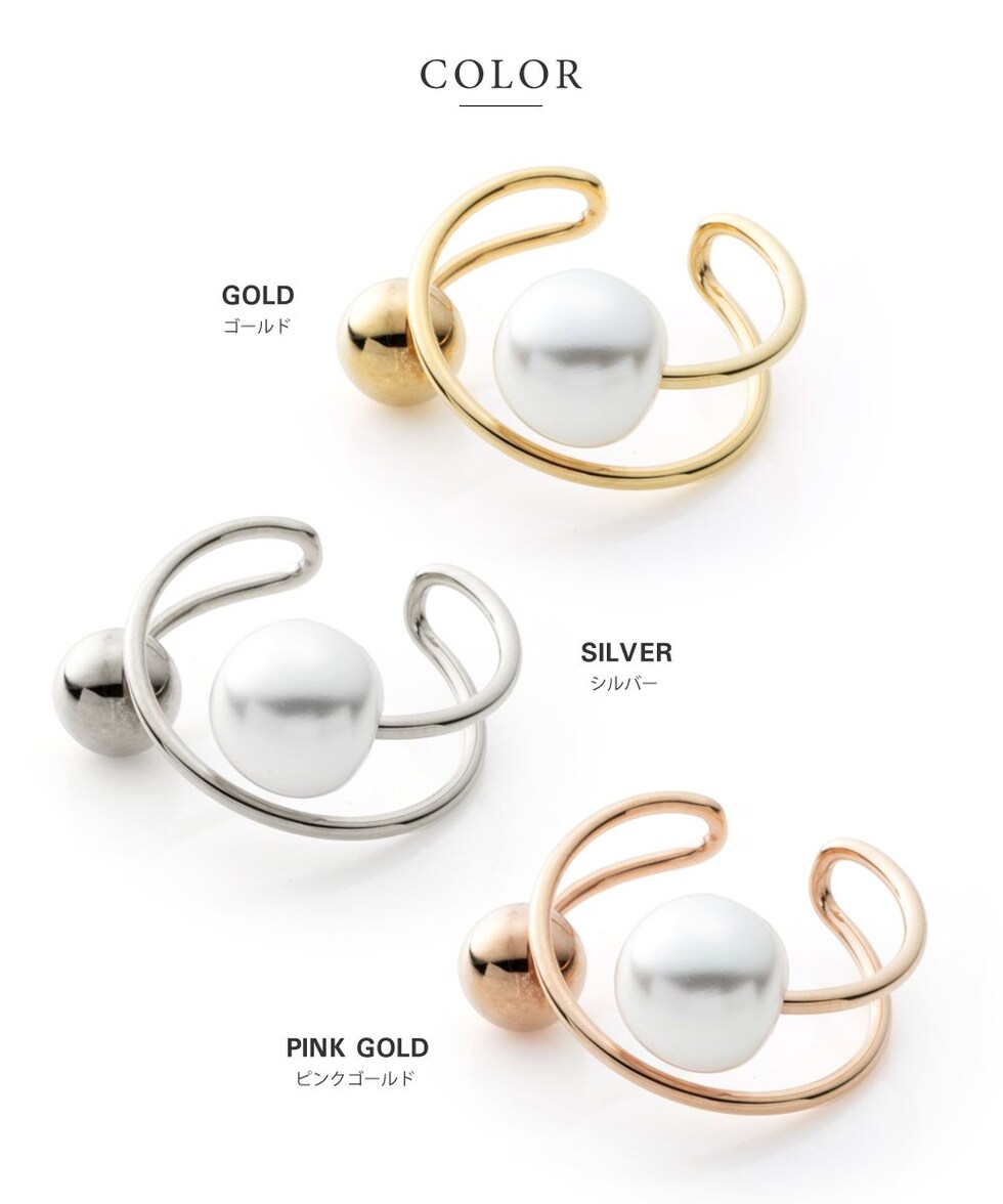 イヤーカフ 金属アレルギー ニッケルフリー レディース イヤーカフ イヤカフ 片耳用 メタルボール スフィア パール cream dot ゆうパケット [ピンクゴールド_フリーサイズ]