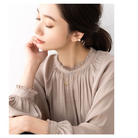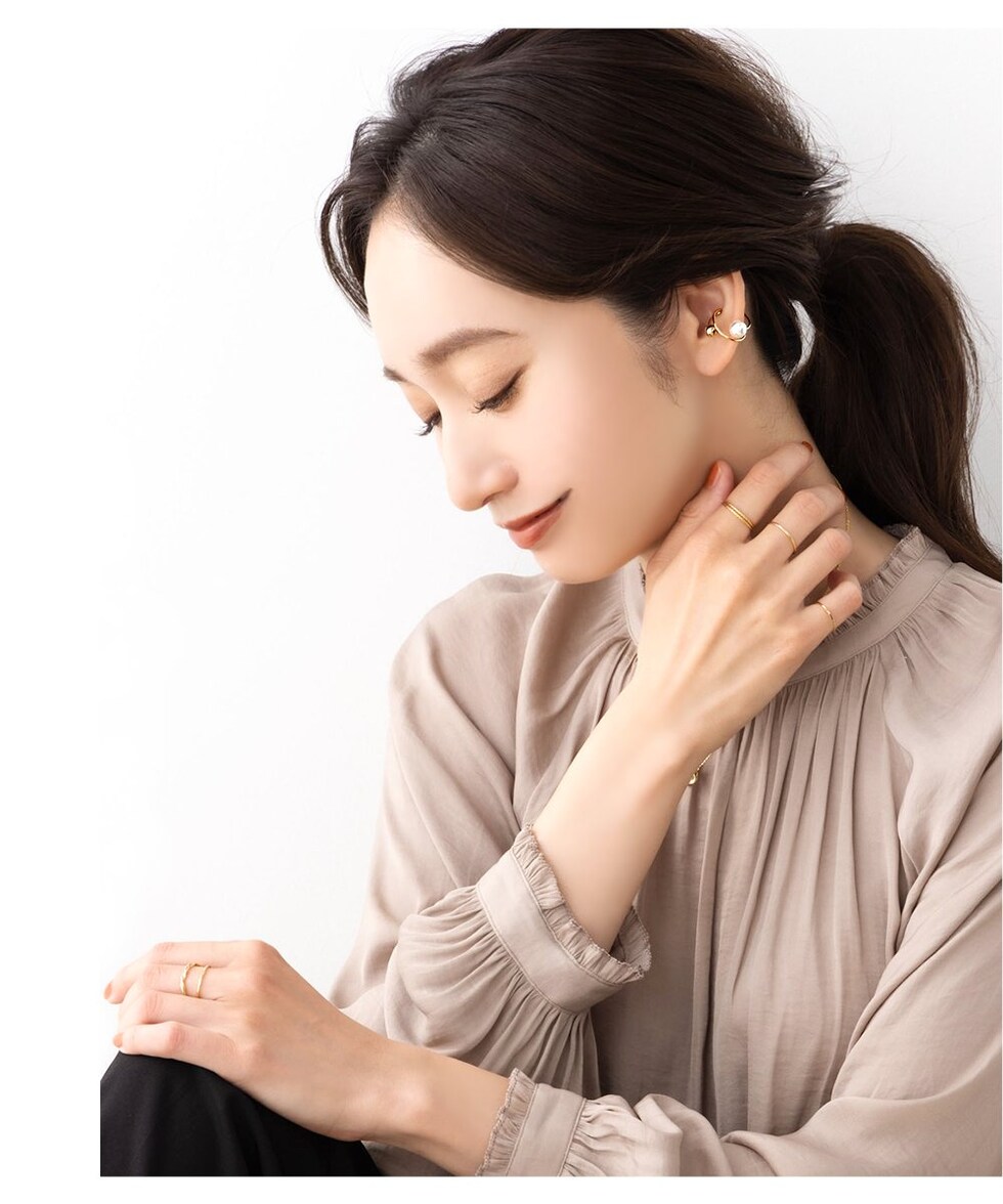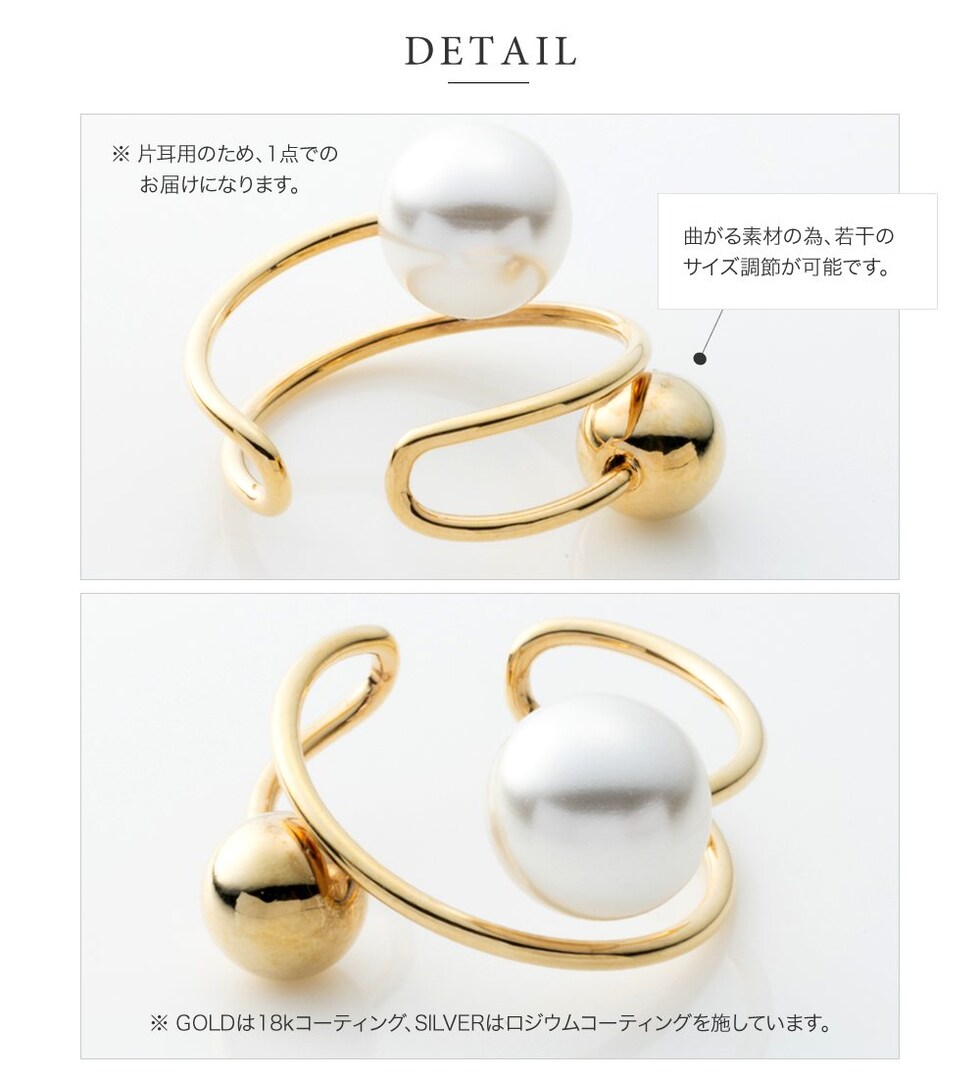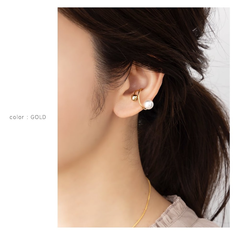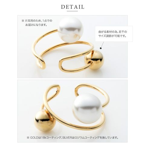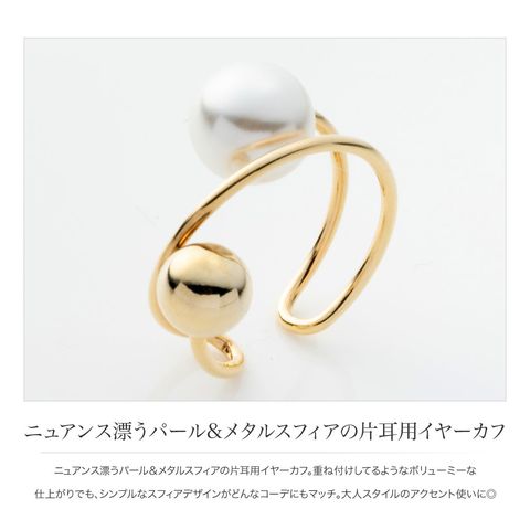 ニュアンス漂うパール&メタルスフィアの片耳用イヤーカフ。重ね付けしてるようなボリューミーな仕上がりでも、シンプルなスフィアデザインがどんなコーデにもマッチ。大人スタイルのアクセント使いに◎